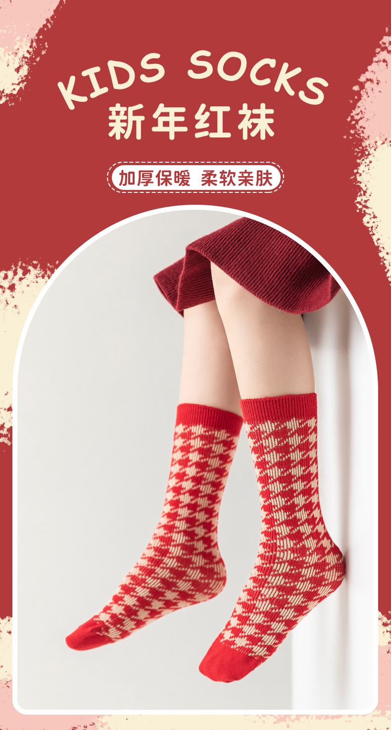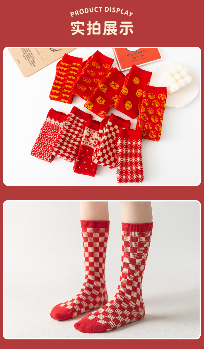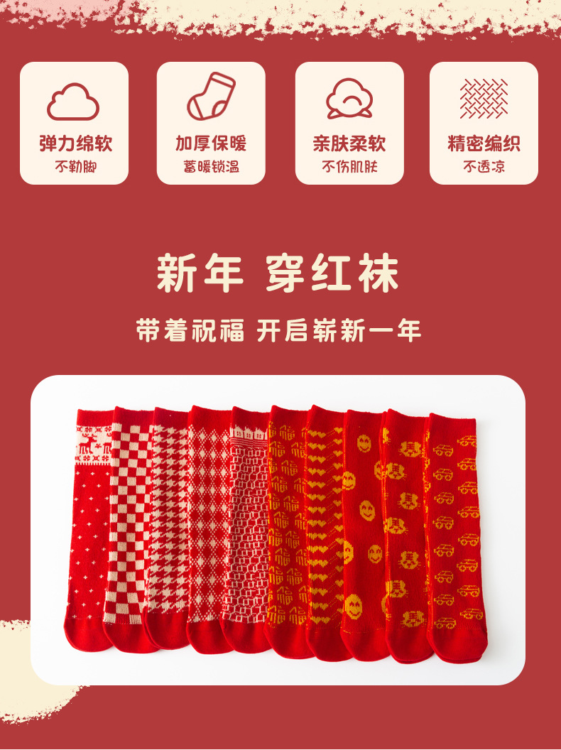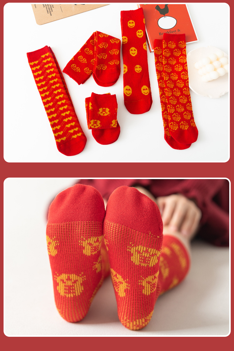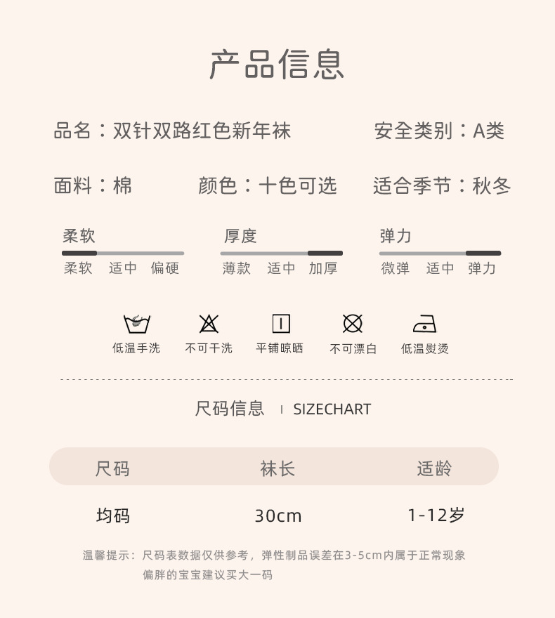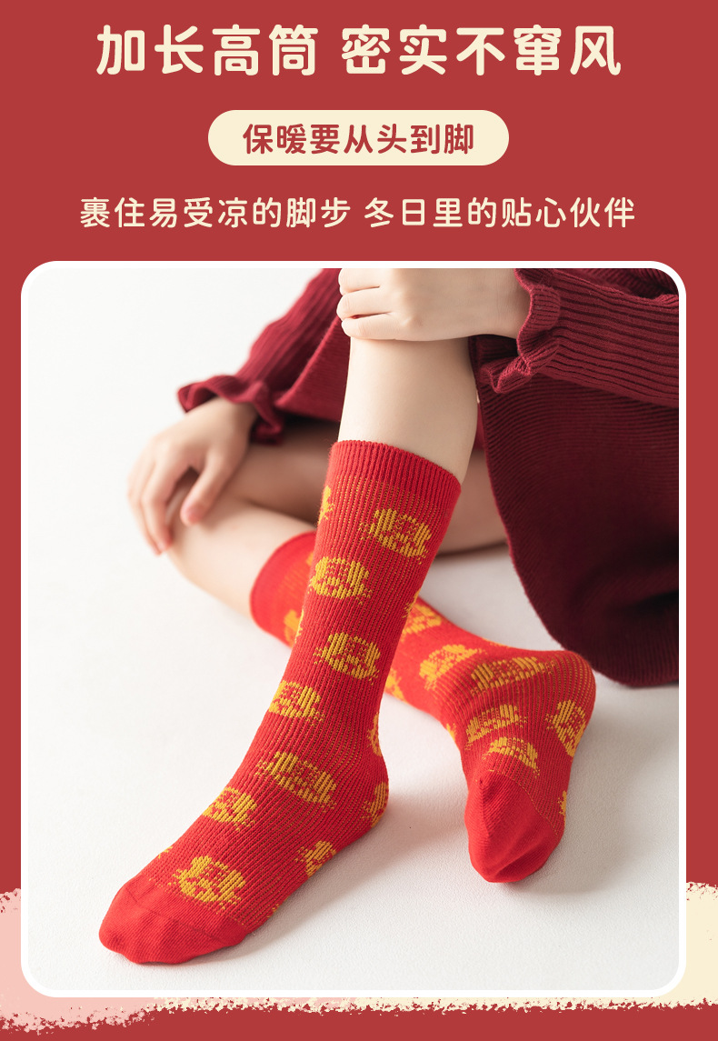 【2双装 新年红袜 祝福满满 加厚保暖】秋冬双针双路加厚儿童袜子男童女童大红袜红色袜子新年宝宝袜棉袜