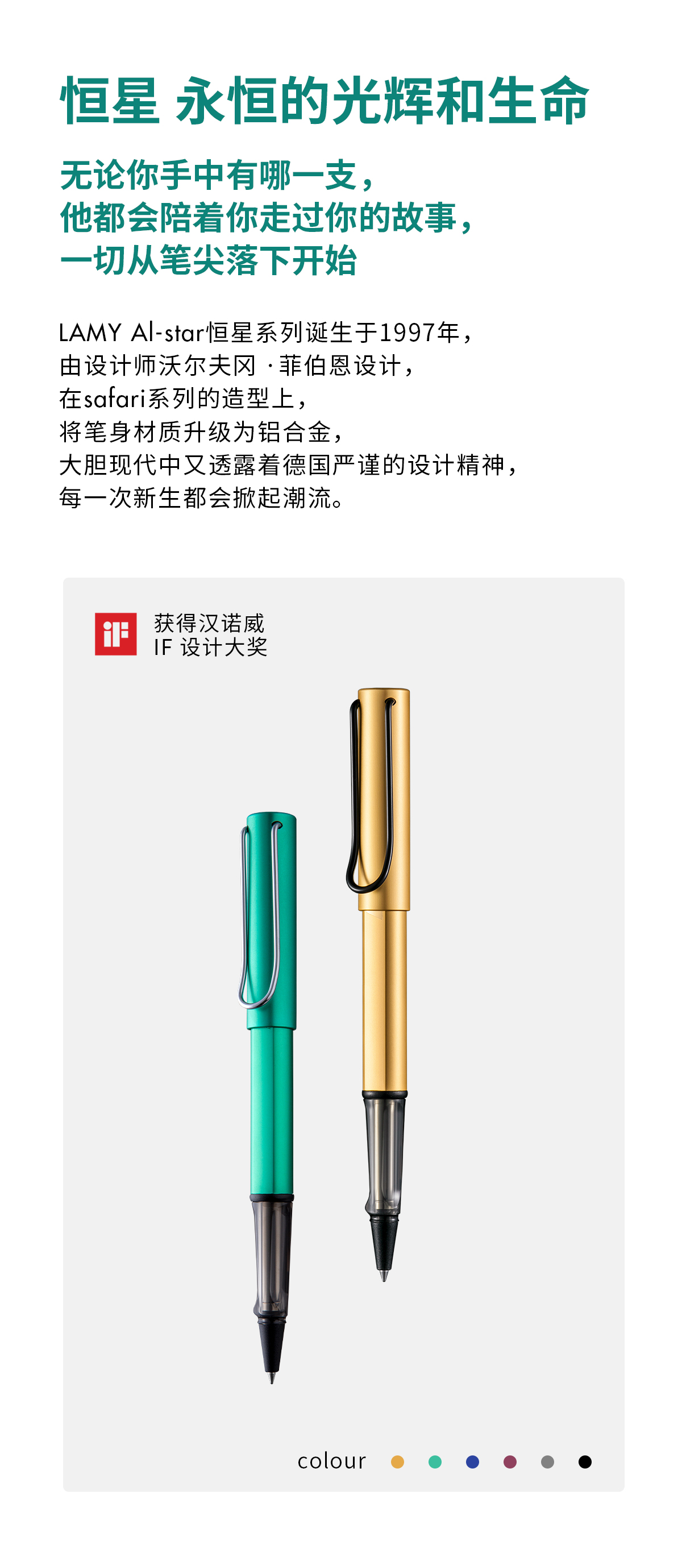 LAMY德国凌美签字笔 恒星al-star系列男士商务办公宝珠笔带笔筒中性水笔礼物定制刻字笔