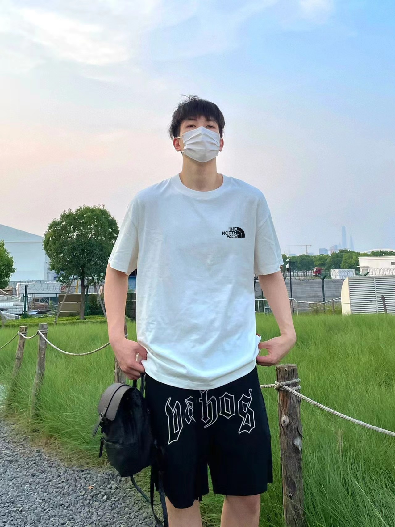 F032794胸口小标黑白双色宽松遮肉短袖T恤情侣款