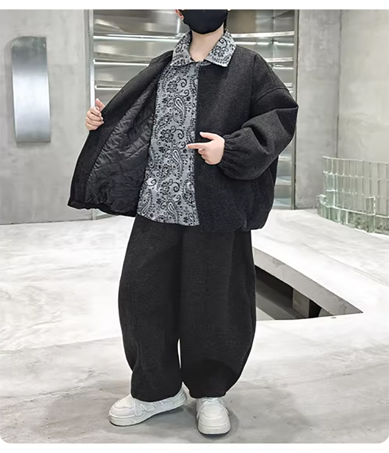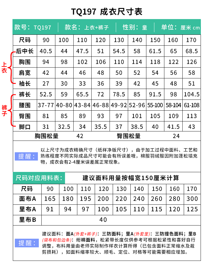 裁缝学苑TQ197男童套装纸样儿童二件套新款冬装中大童男孩加绒保暖样板