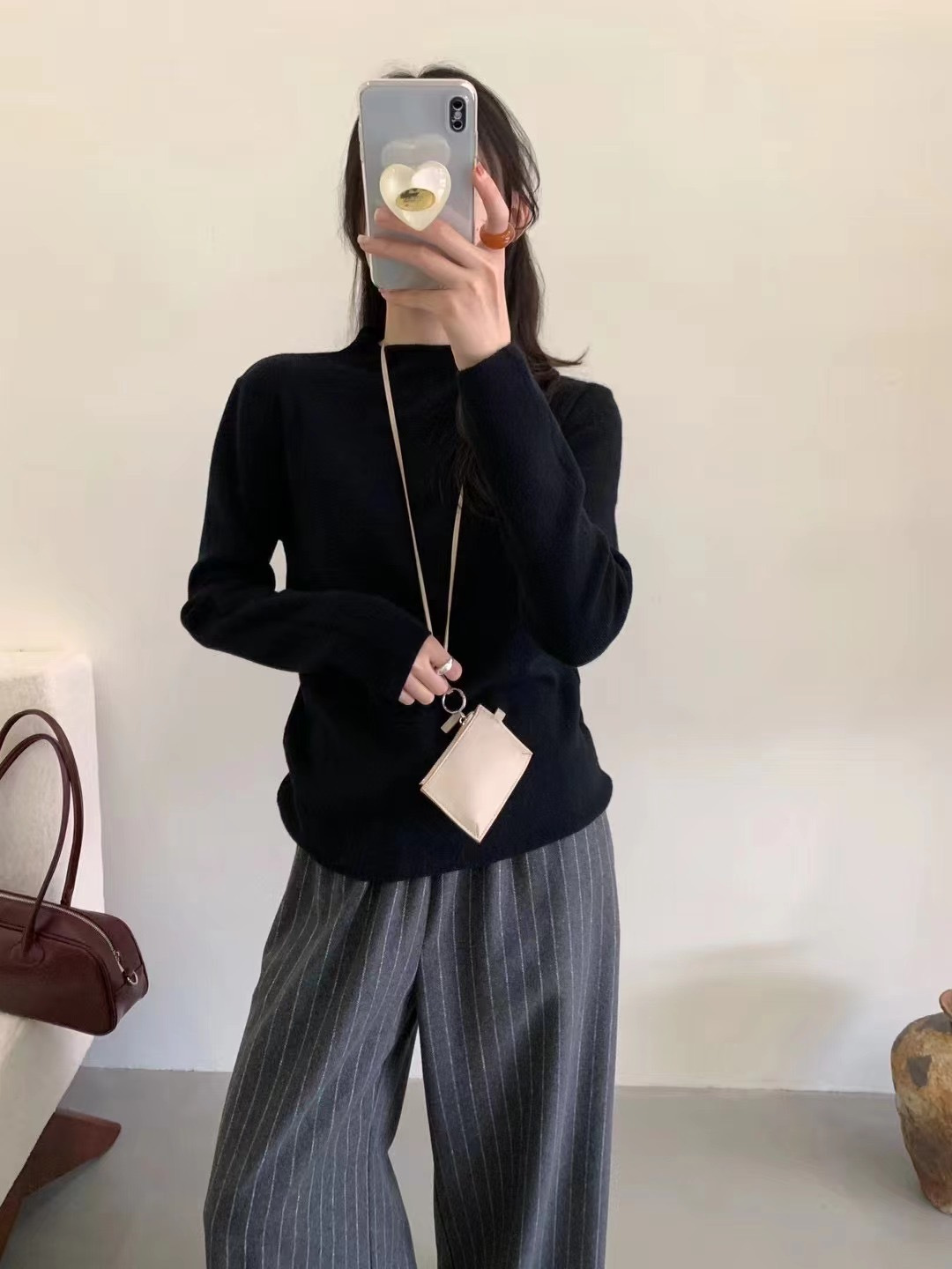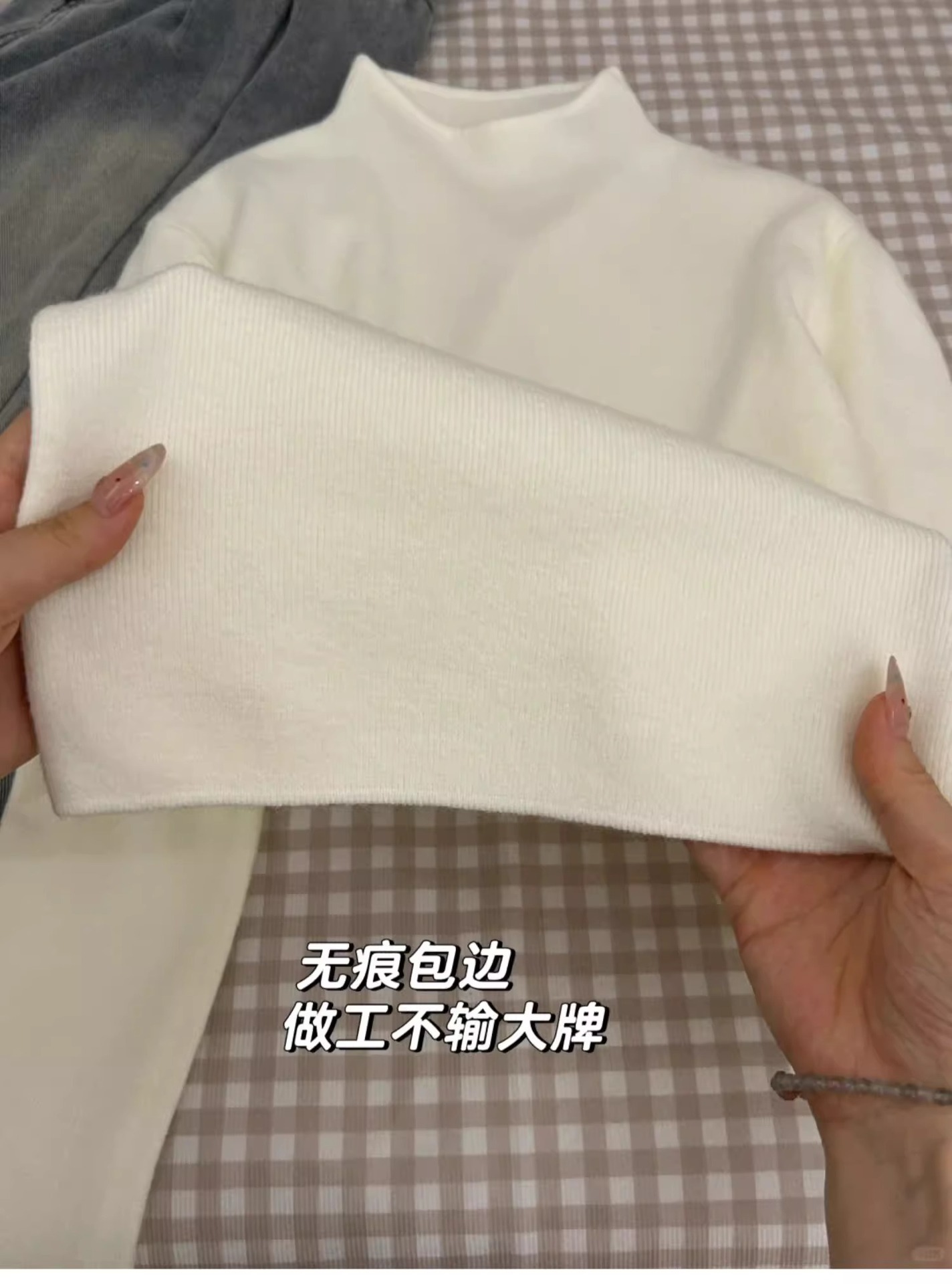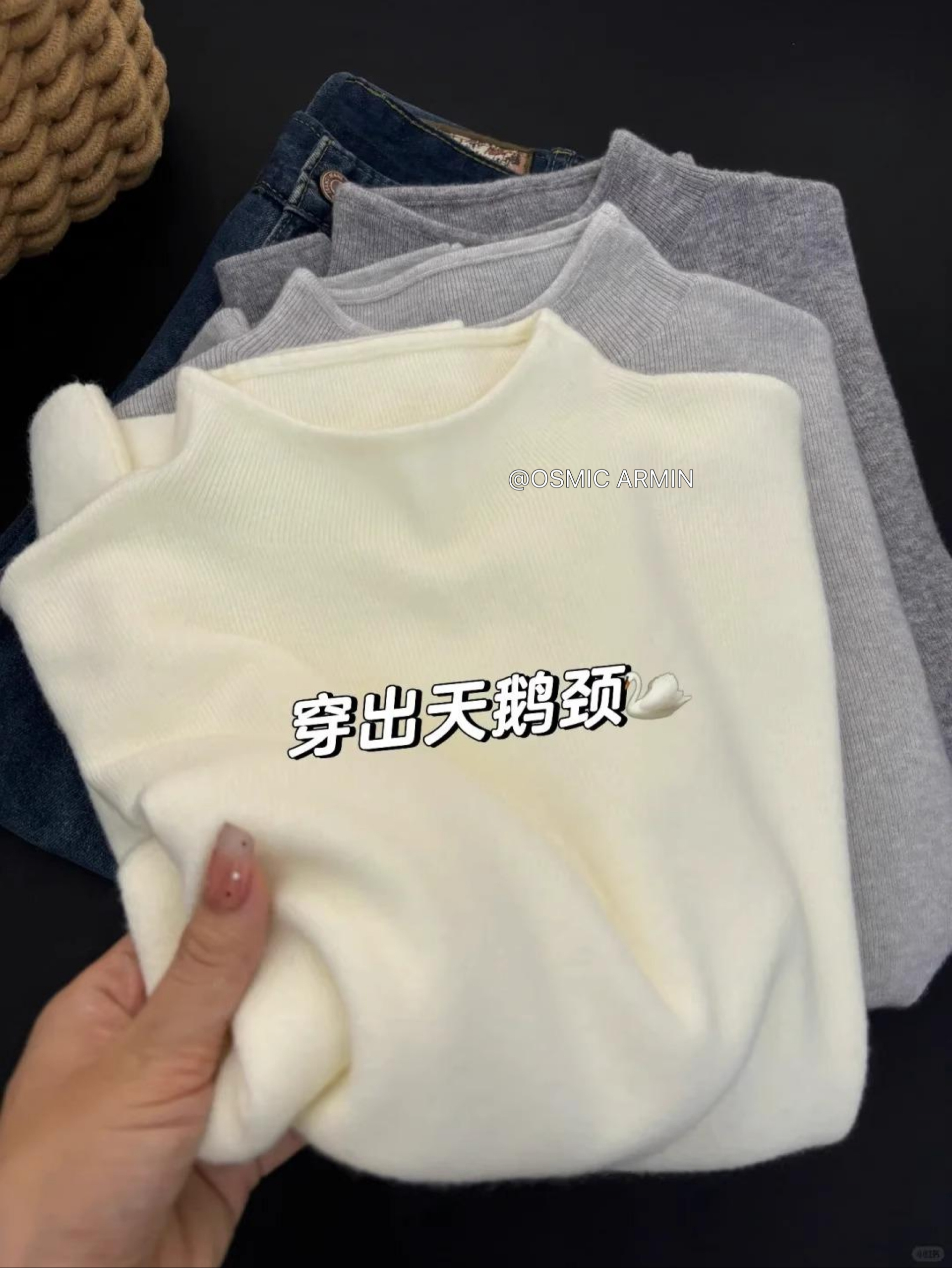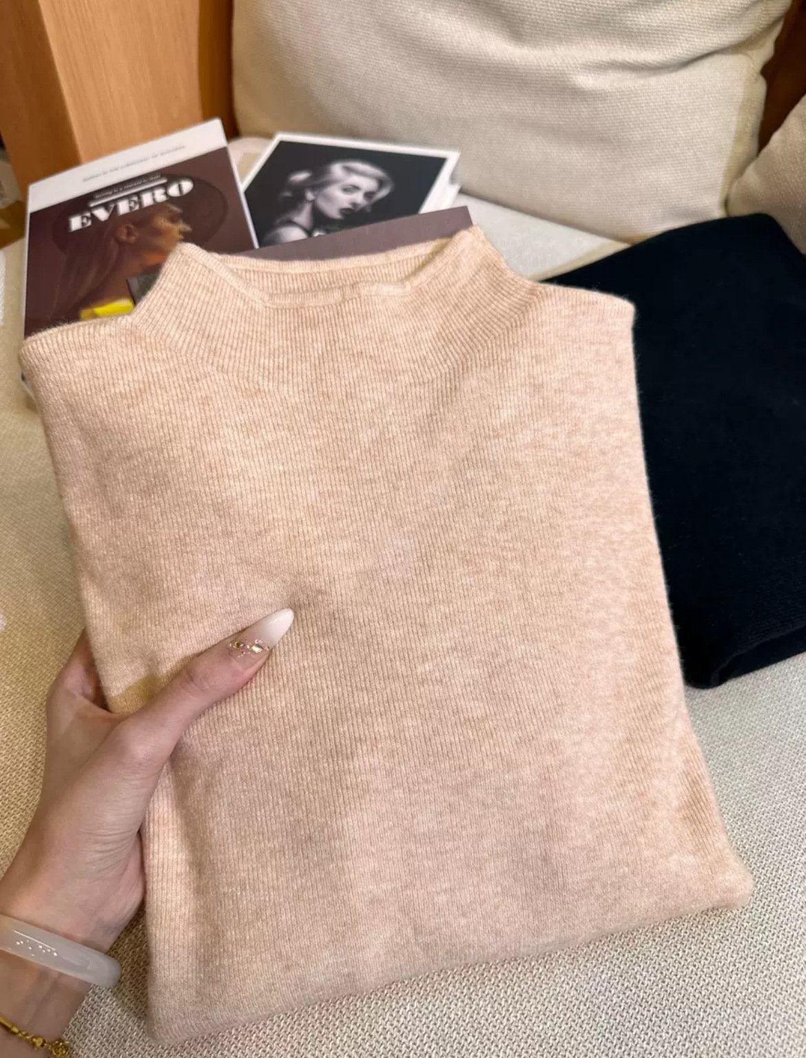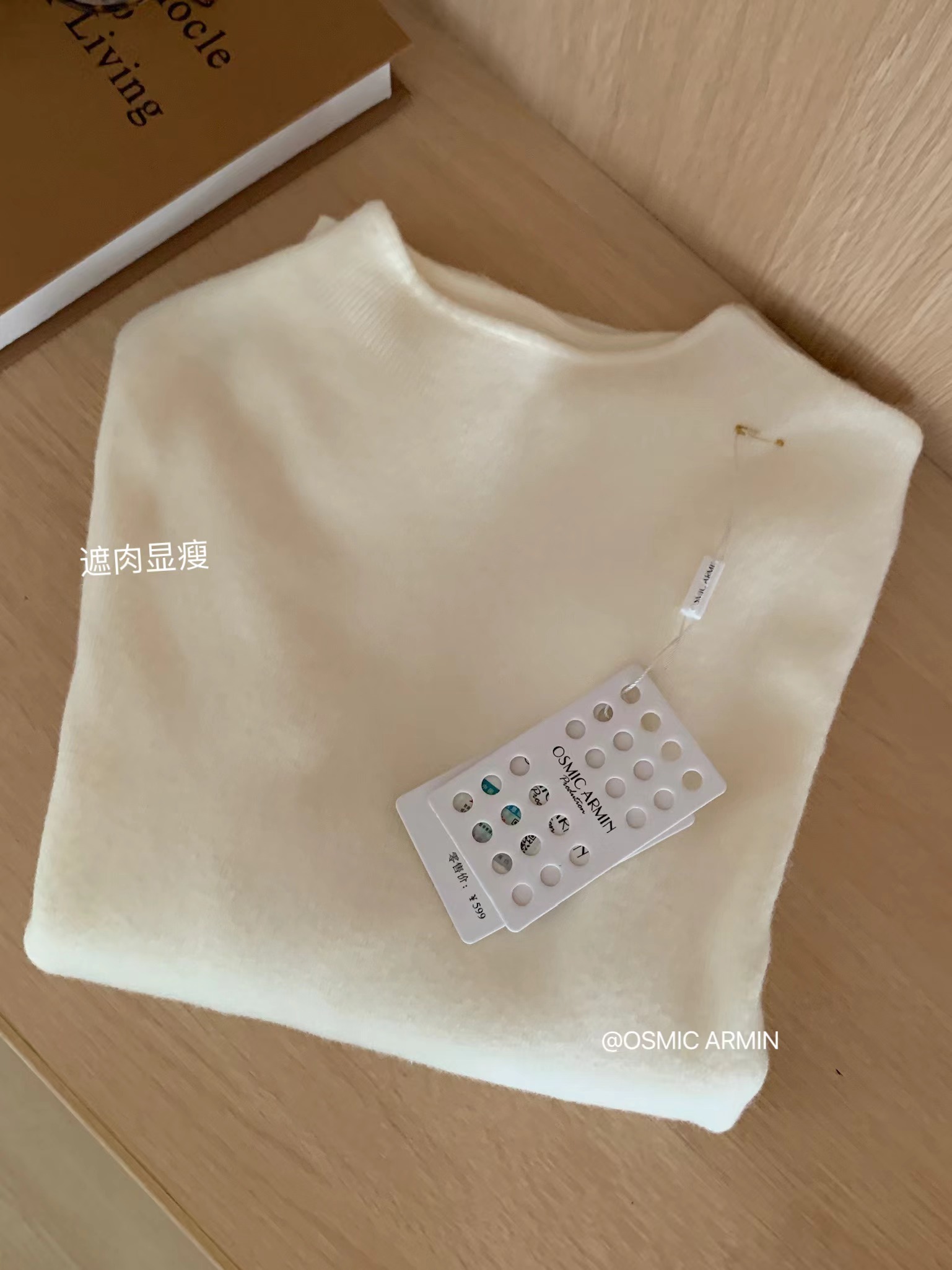 买一送一 超值2件装【美利奴天鹅羊毛打底衫 刘诗诗同款】羊毛半高领打底衫小立领奶fufu软糯针织长袖打底衫女春秋冬季显瘦毛衣简约上衣内搭