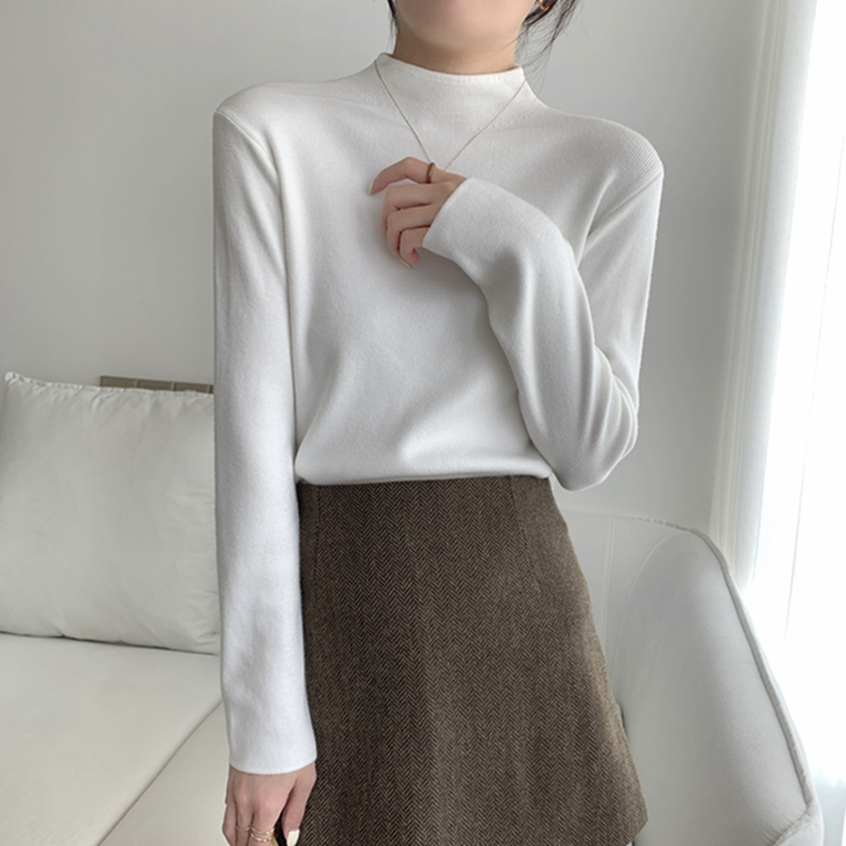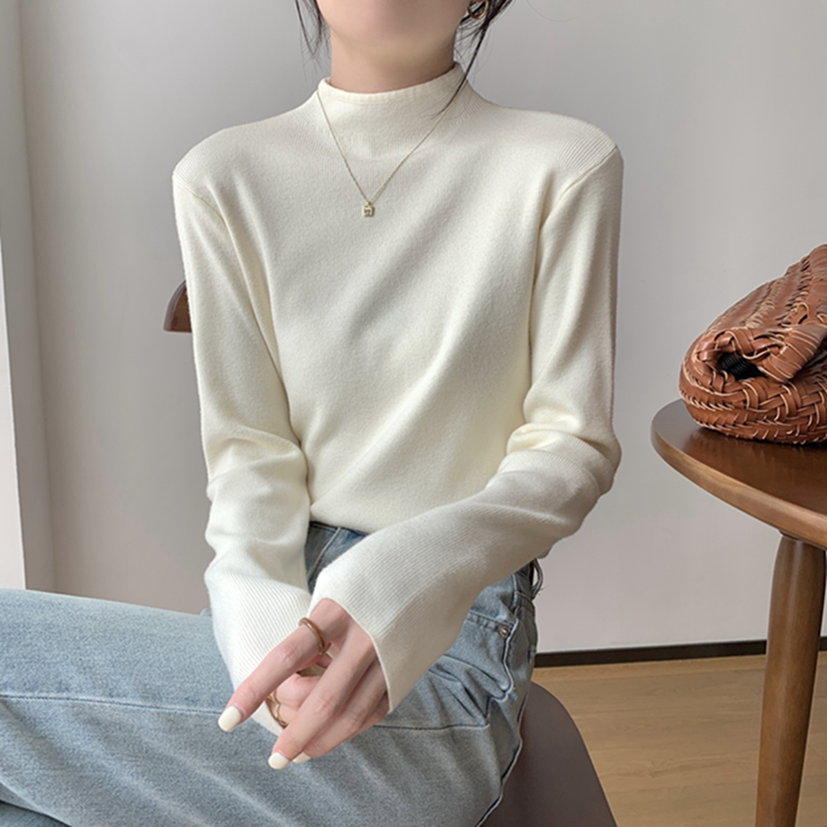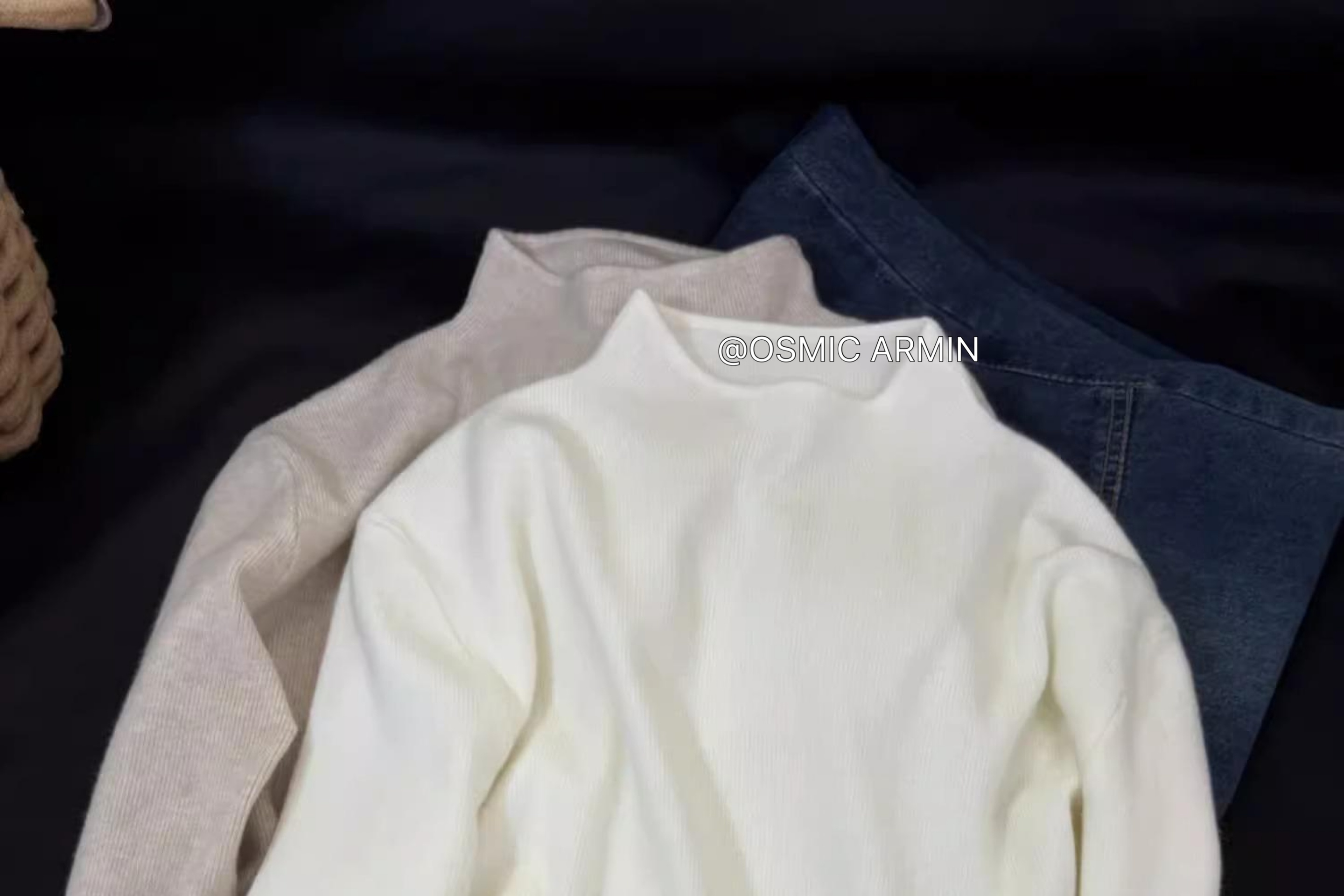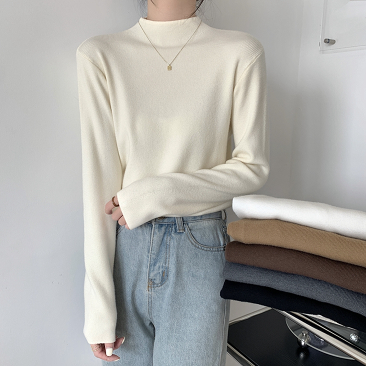 买一送一 超值2件装【美利奴天鹅羊毛打底衫 刘诗诗同款】羊毛半高领打底衫小立领奶fufu软糯针织长袖打底衫女春秋冬季显瘦毛衣简约上衣内搭