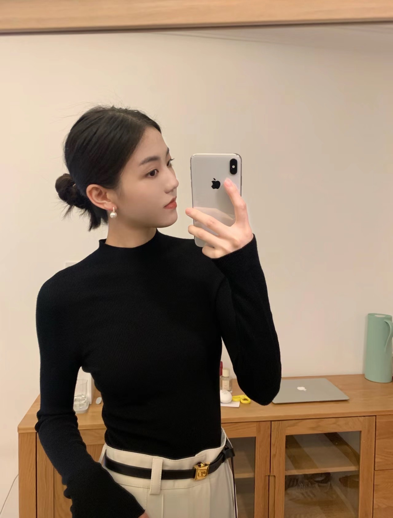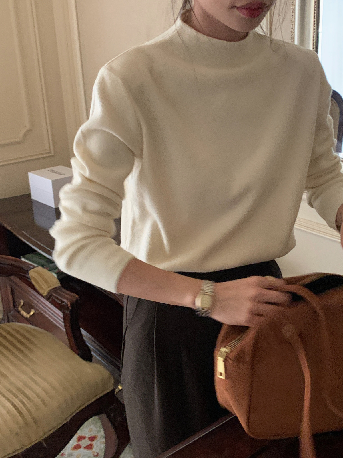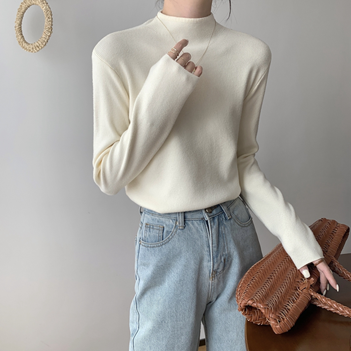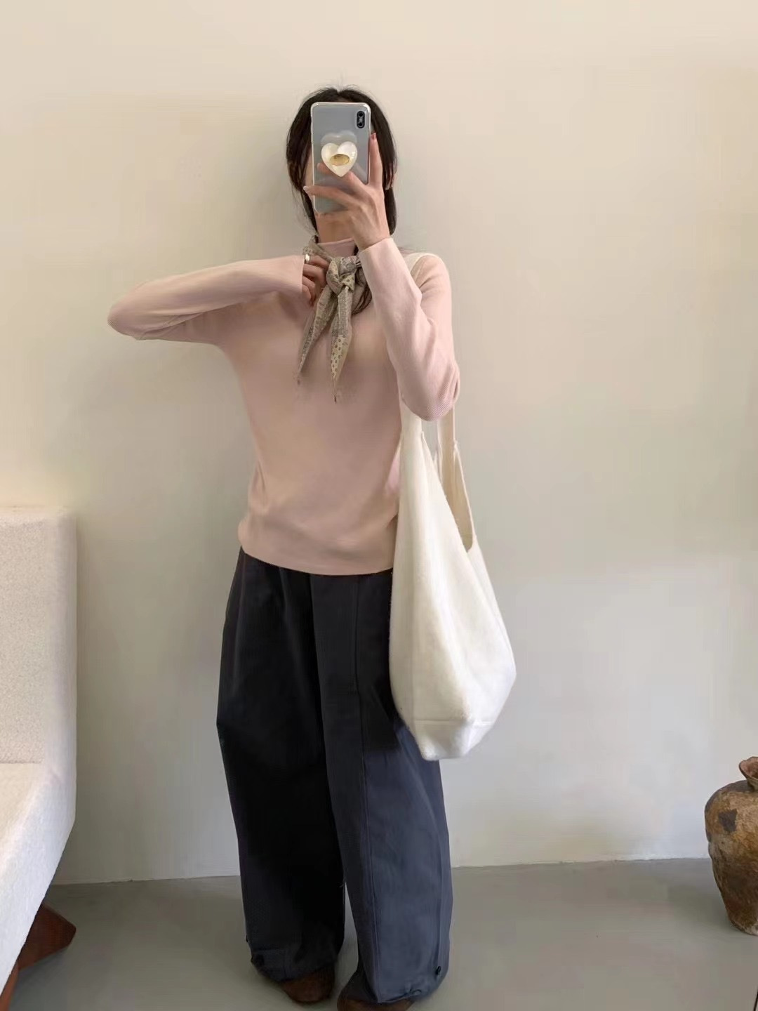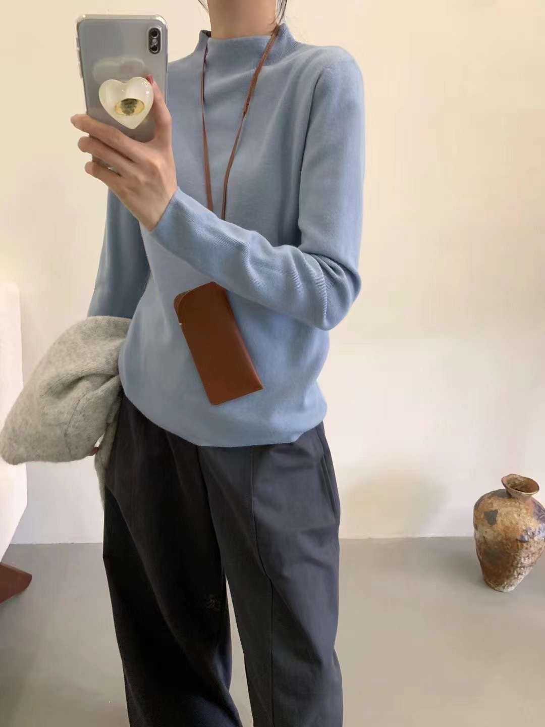 买一送一 超值2件装【美利奴天鹅羊毛打底衫 刘诗诗同款】羊毛半高领打底衫小立领奶fufu软糯针织长袖打底衫女春秋冬季显瘦毛衣简约上衣内搭