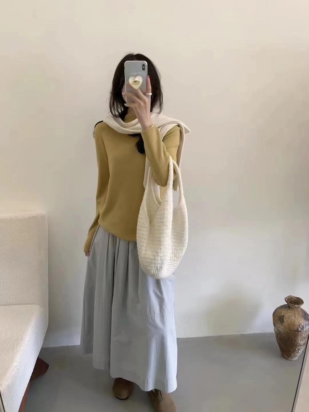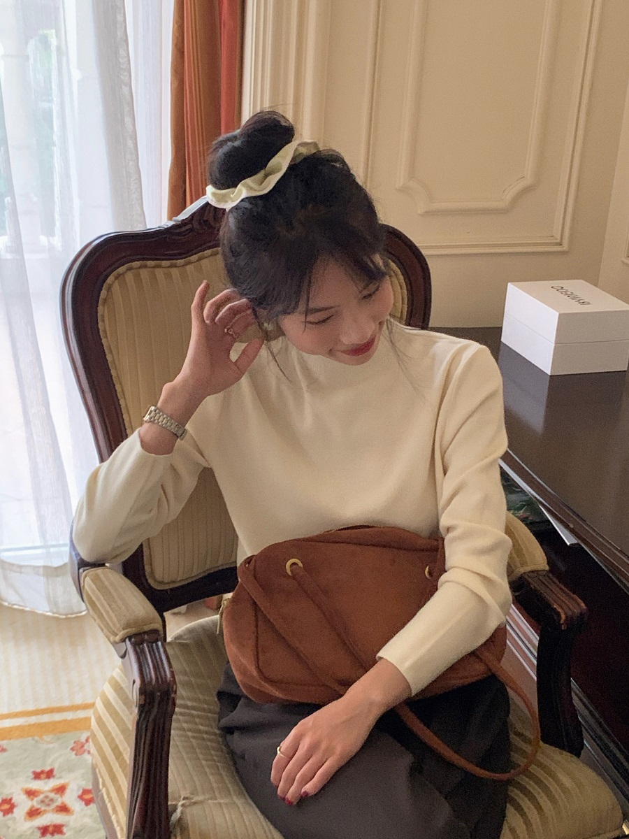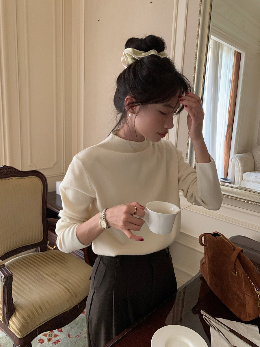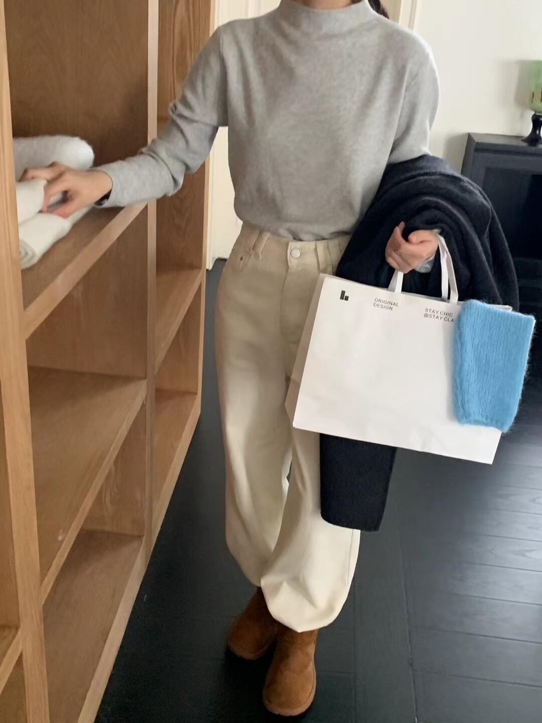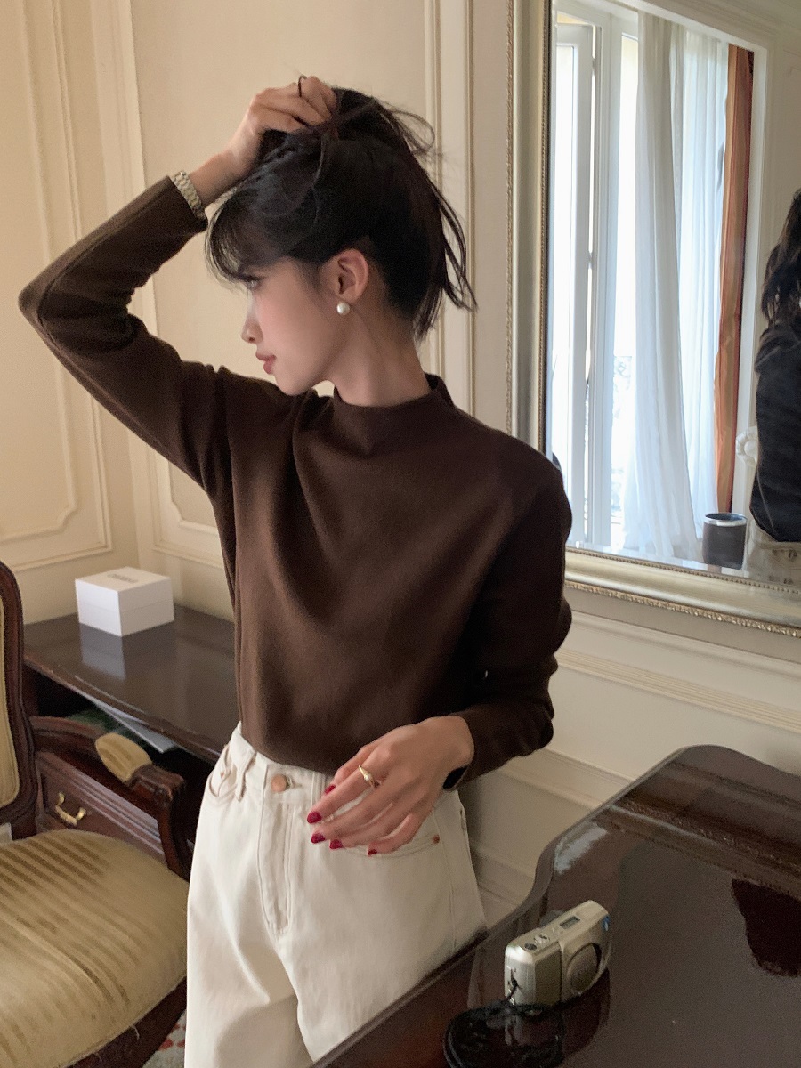 买一送一 超值2件装【美利奴天鹅羊毛打底衫 刘诗诗同款】羊毛半高领打底衫小立领奶fufu软糯针织长袖打底衫女春秋冬季显瘦毛衣简约上衣内搭