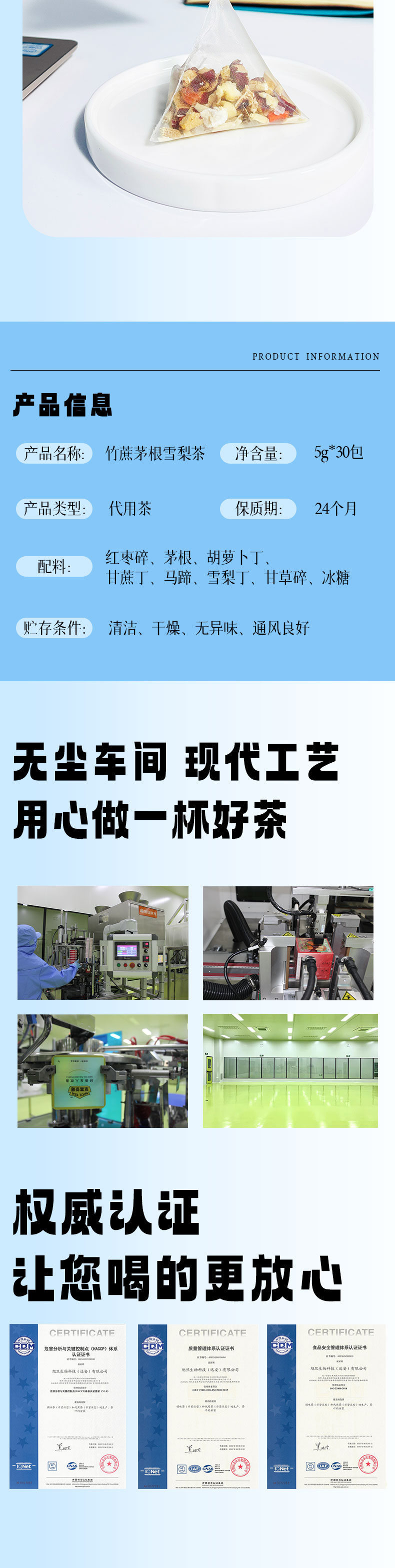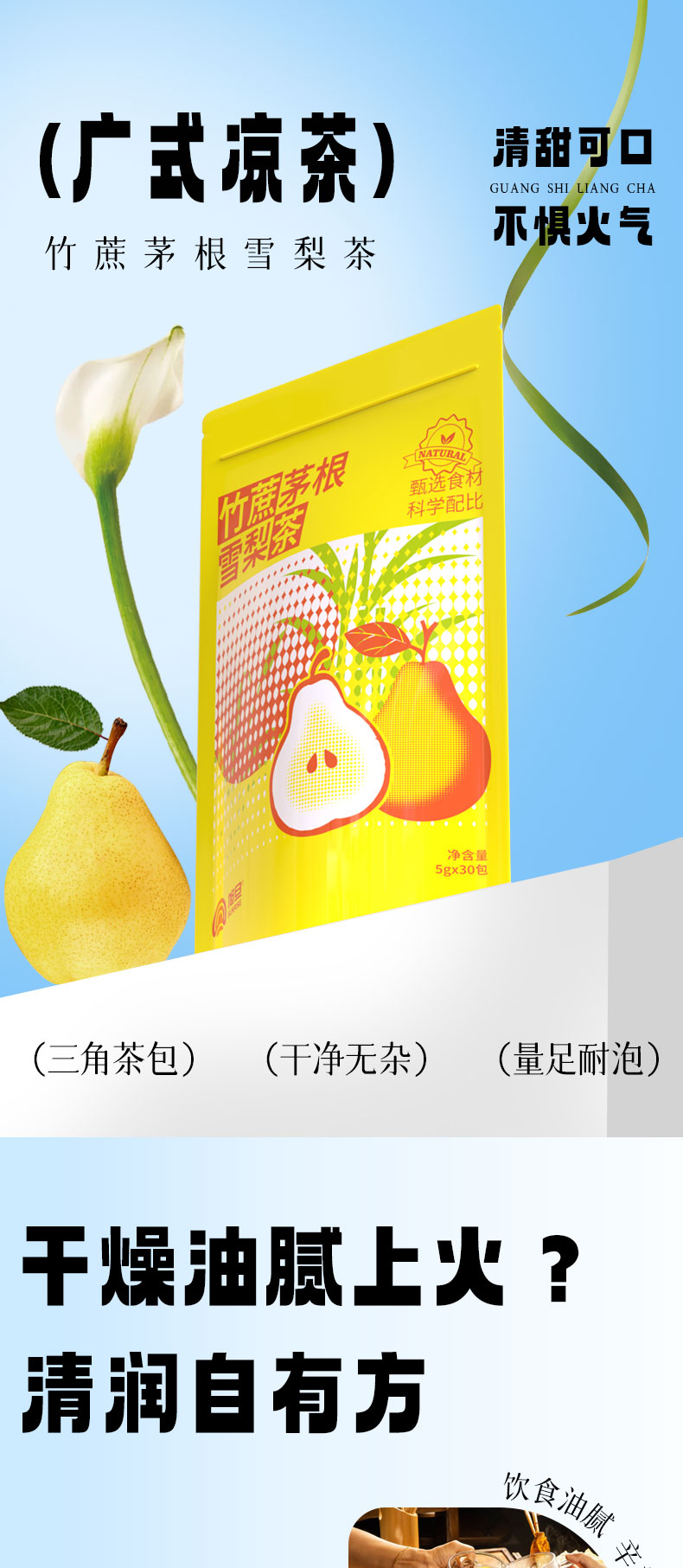 【宜昌助农馆】竹蔗茅根雪梨茶 5g*30包/袋 独立小包