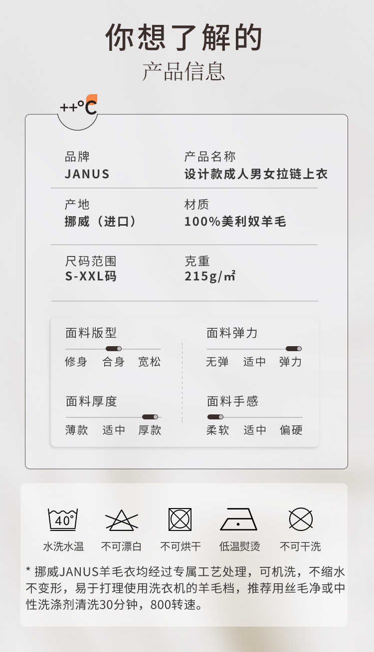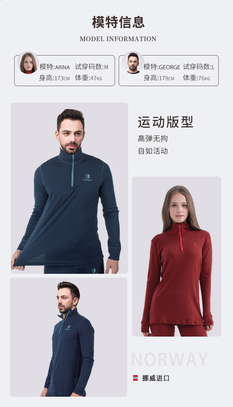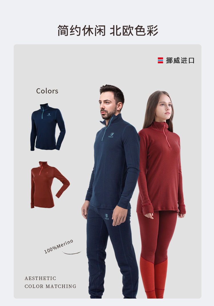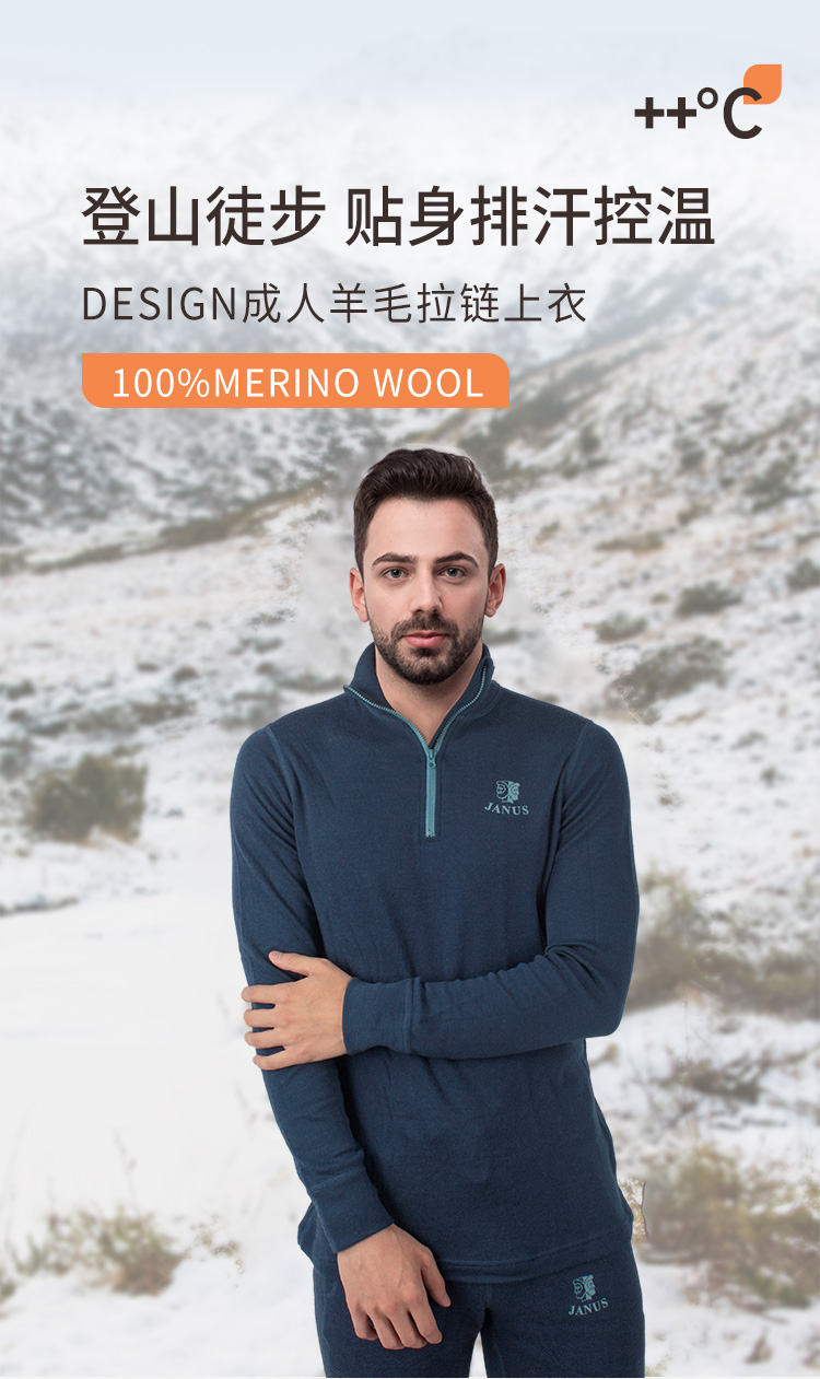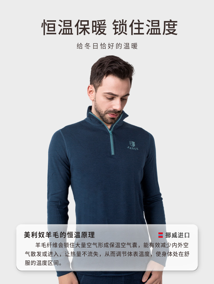 低于双11【S-3XL】挪威进口JANUS成人100%美利奴羊毛拉链上衣 克重215g/㎡【2025新品】