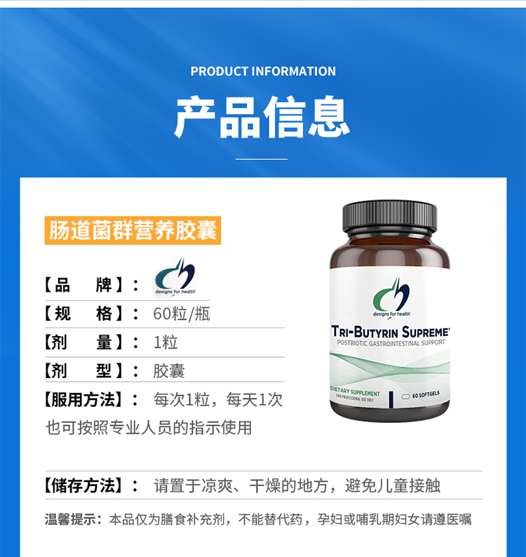 【肠道菌群营养胶囊】丁酸胶囊 Tri-Butyrin Supreme™ 60粒 2个月剂量 design for health健康设计DFH 超级3合1丁酸盐配方