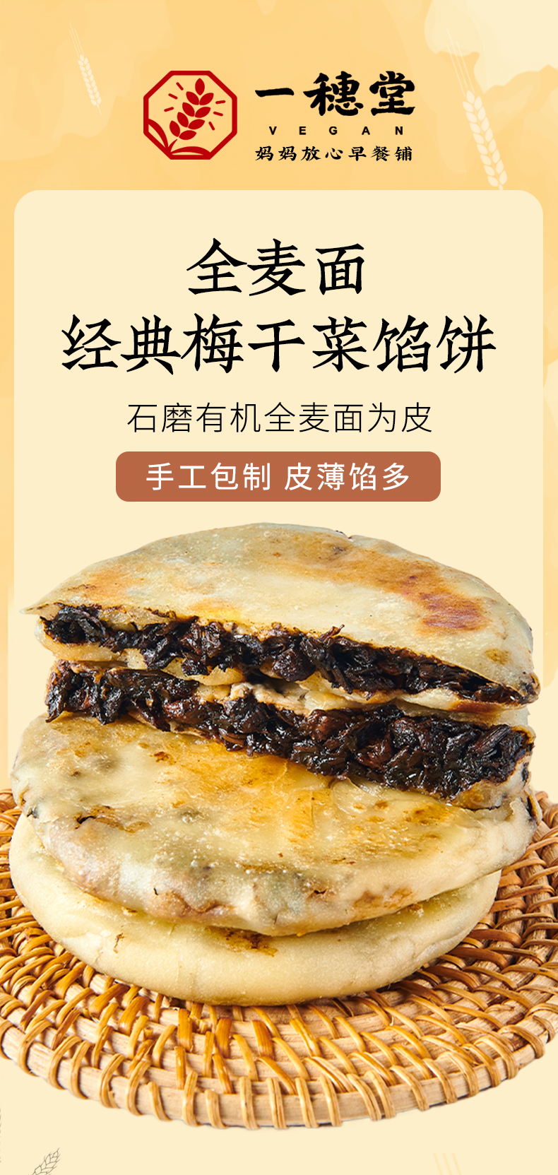 【一穗堂经典梅干菜有机全麦面馅饼】顺丰冷链包邮/石磨有机全麦面/石磨有机全麦面/手工包制、无白面、微煎/净素/皮薄馅多/煎熟即食