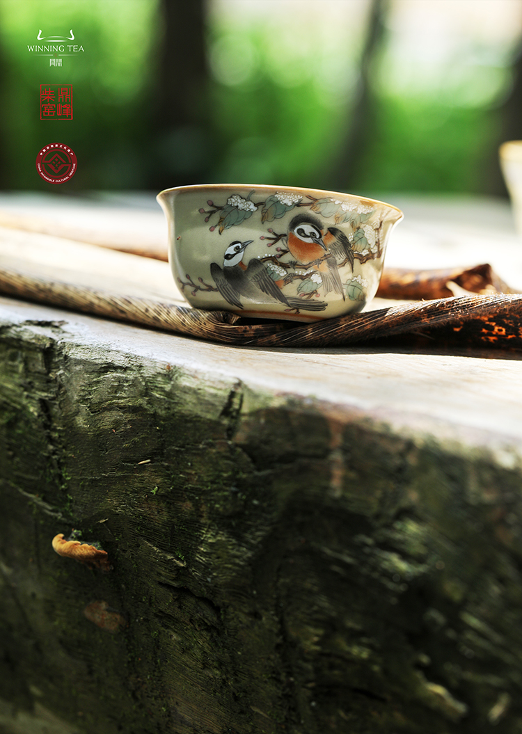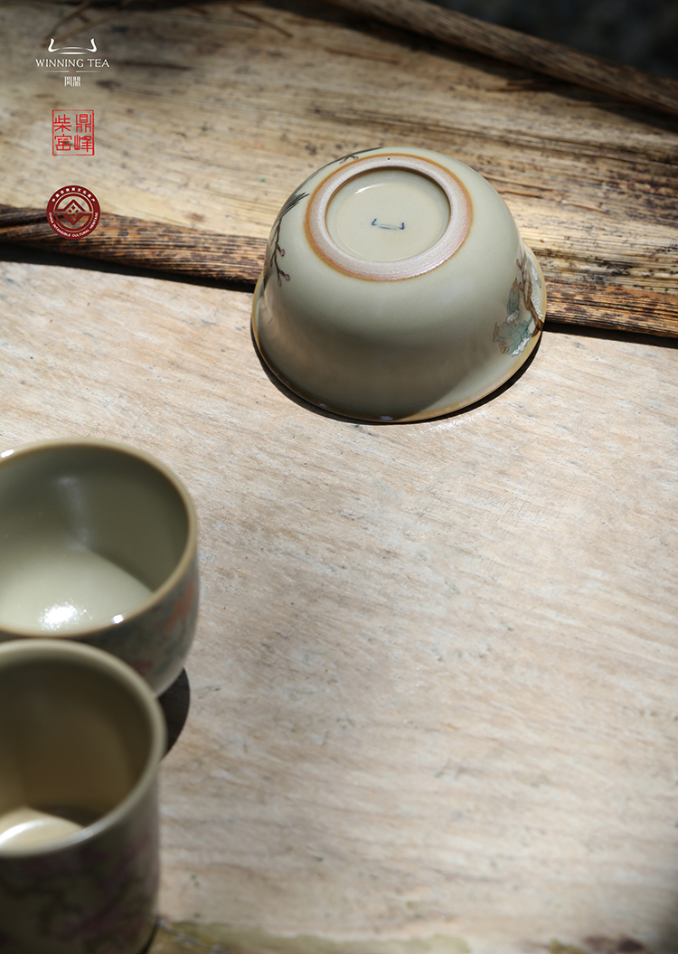 问鼎汝瓷鼎峰柴窑(高温彩)玉珀釉鸡缸杯(白头偕老)