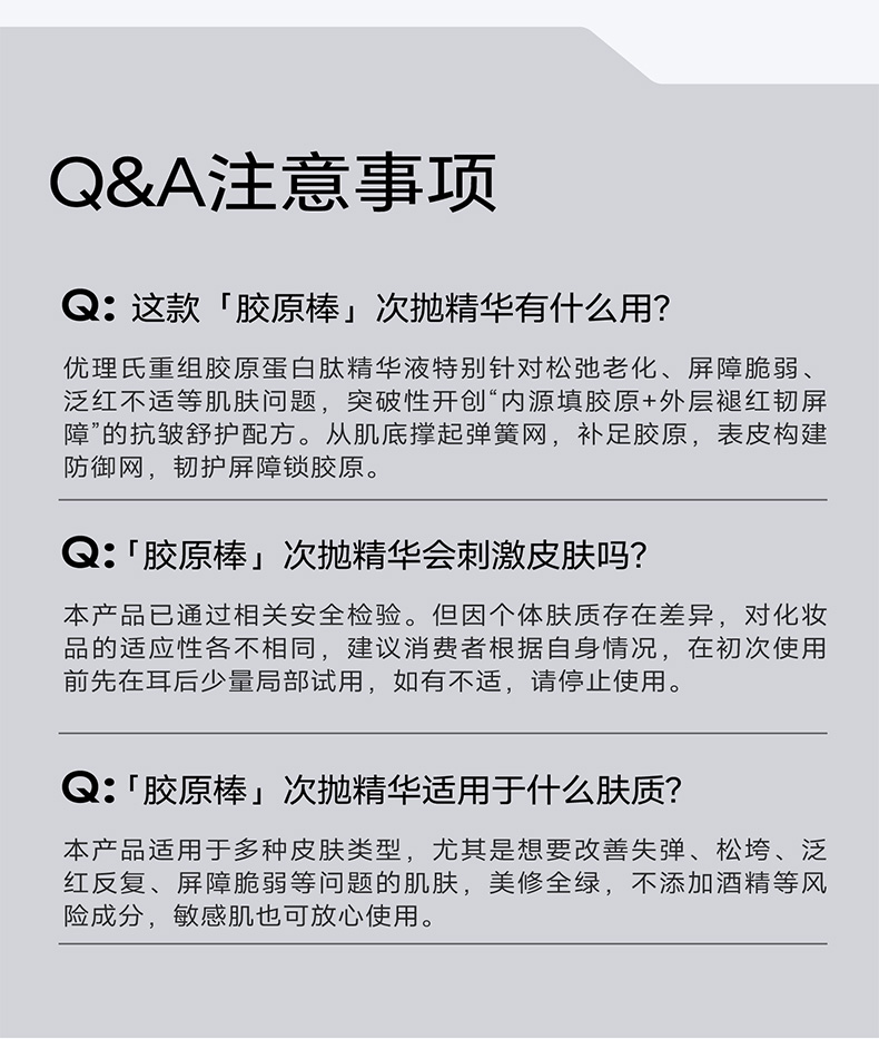 【买30支送10支】优理氏肌光弹次抛精华液抗皱紧致重组胶原蛋白屏障修护
