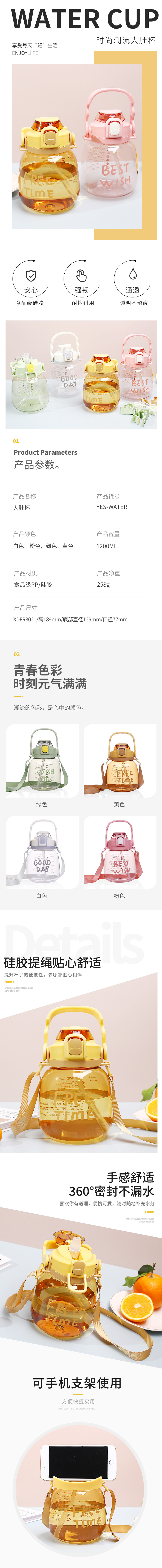 新款网红大容量水杯1200ml 大肚塑料杯子潮时尚运动水壶