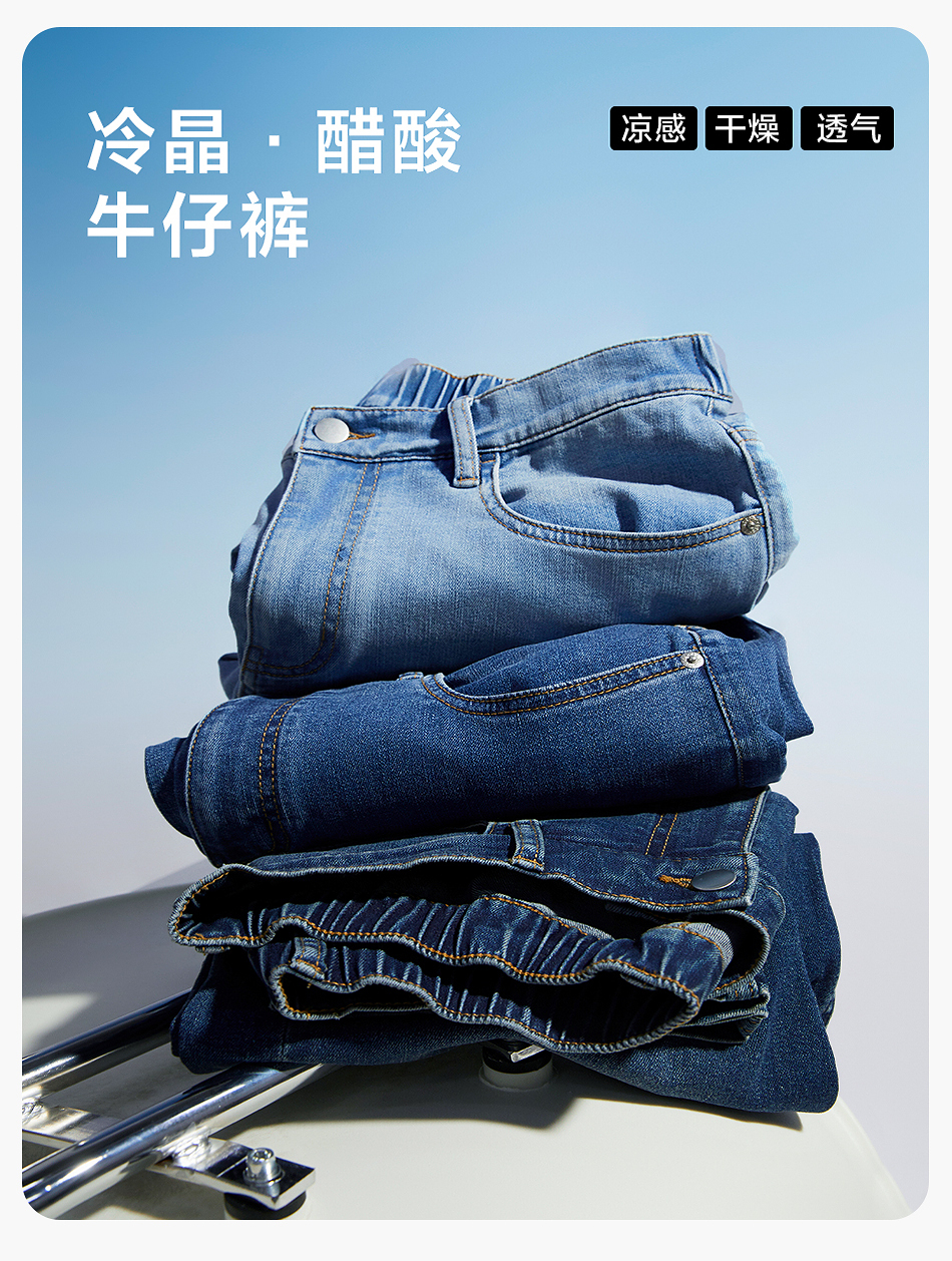棉仓353819007-冷晶醋酸松紧腰锥型牛仔