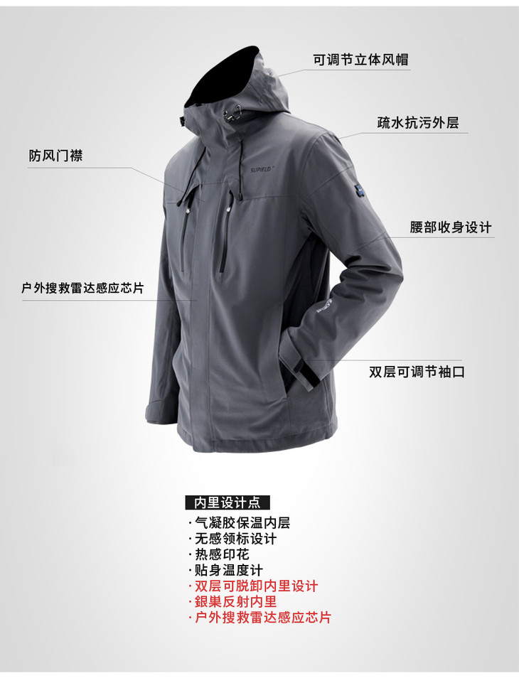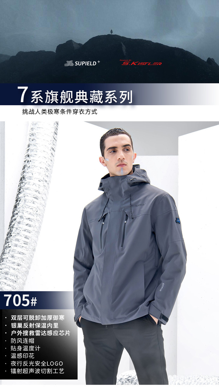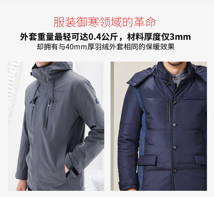 素湃 Supield 黑科技宇航款气凝胶保暖衣可脱卸内胆棉衣服男士棉服P705