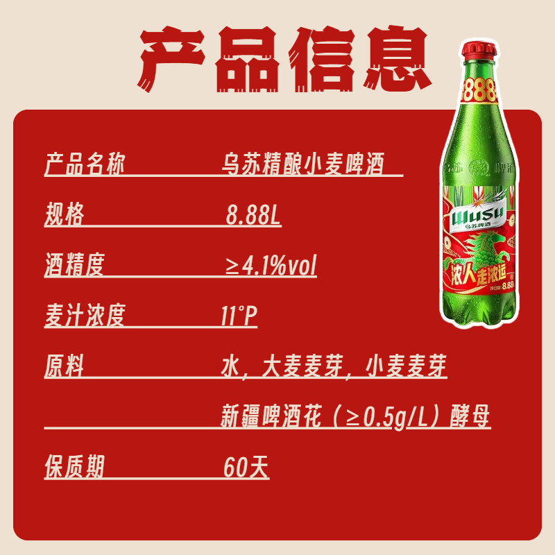 乌苏8.88升啤酒2026年新春限定版精酿啤酒 8.88L*1瓶