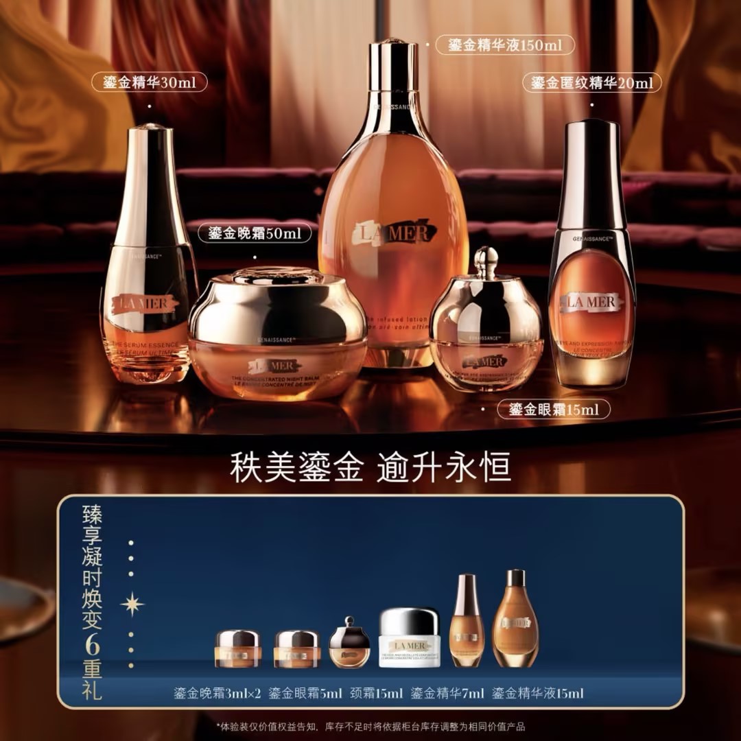 【爆】【新年礼】1楼海蓝之谜鎏金水150ml+海蓝之谜鎏金匿纹精华20ml+海蓝之谜鎏金精华30ml+海蓝之谜鎏金眼霜15ml+海蓝之谜鎏金晚霜50ml