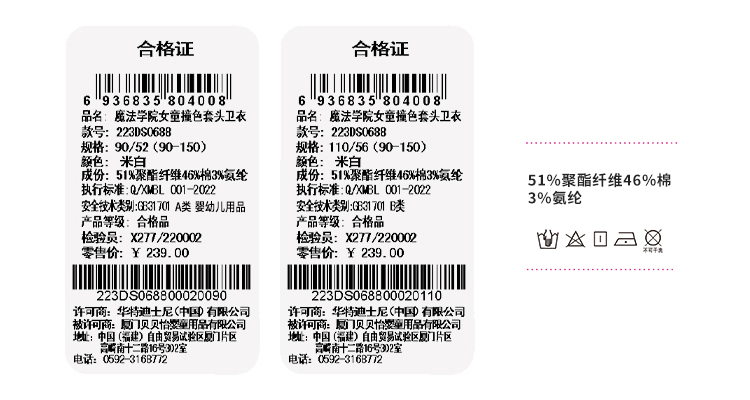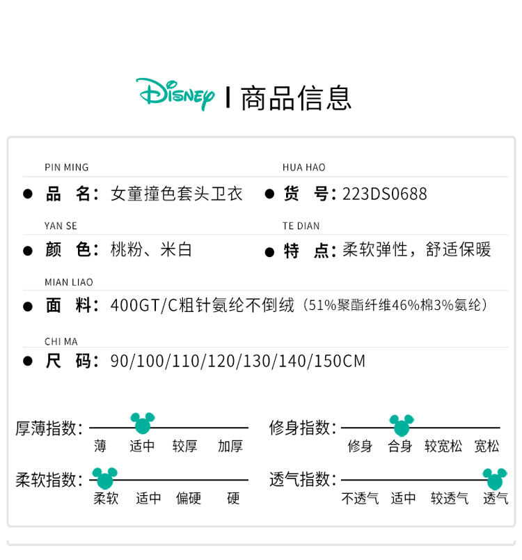 【商场同款】迪士尼秋季女童加绒套头卫衣223DS0688