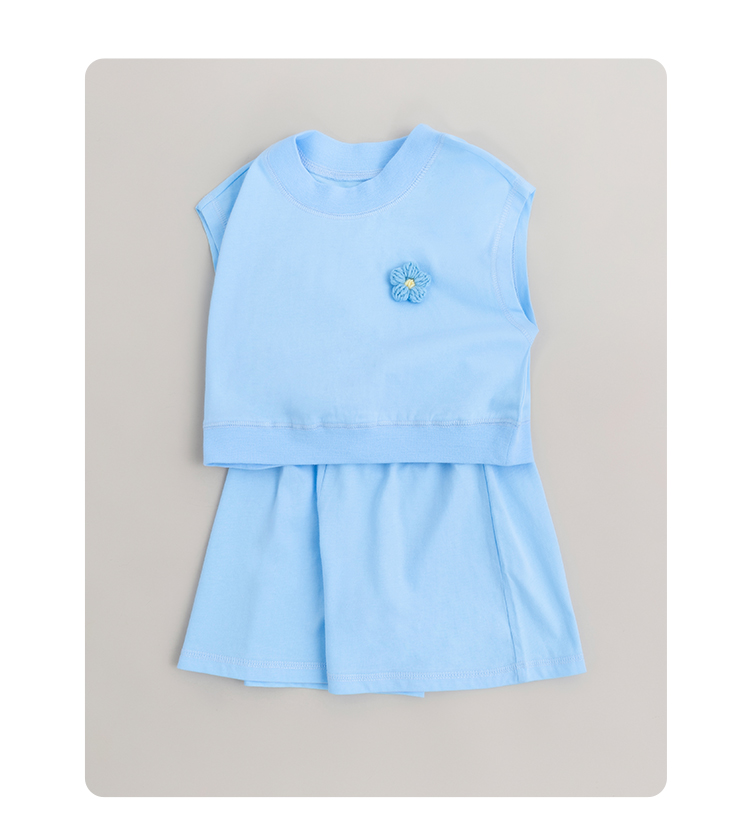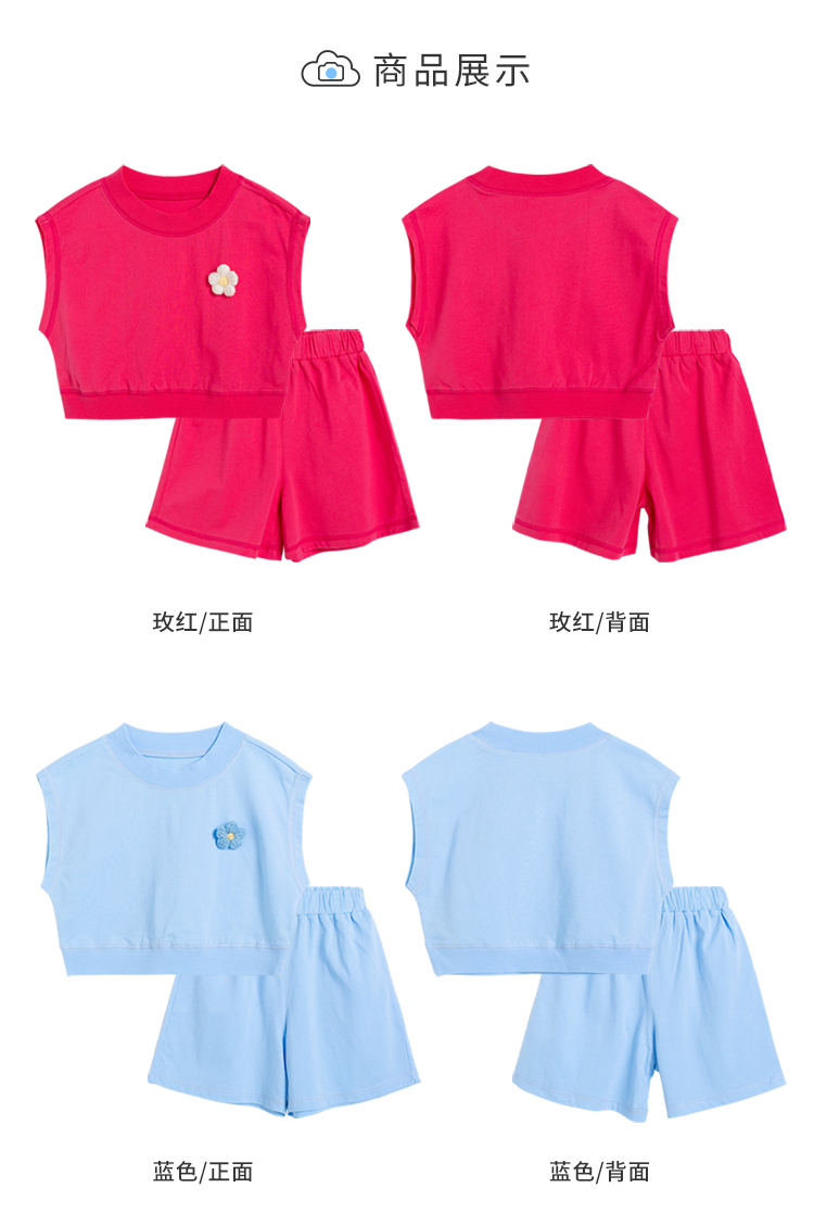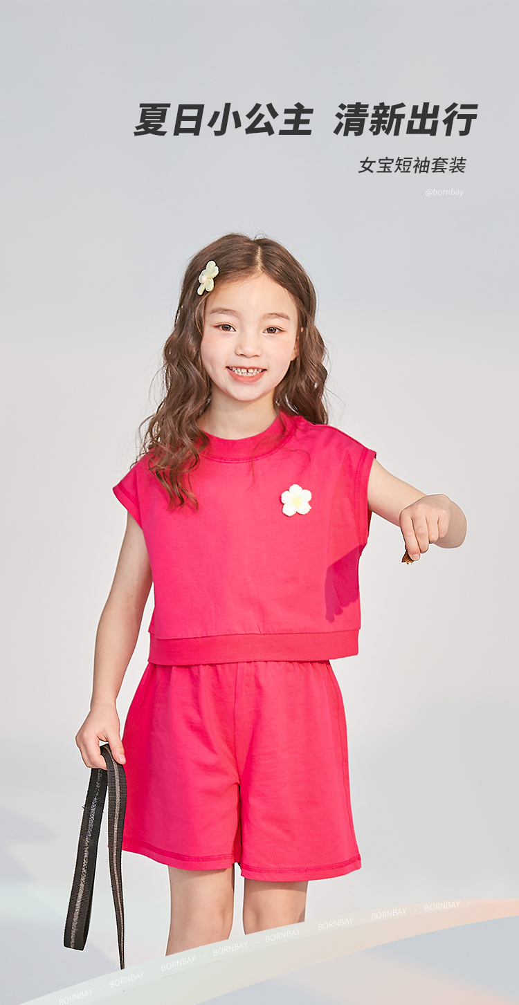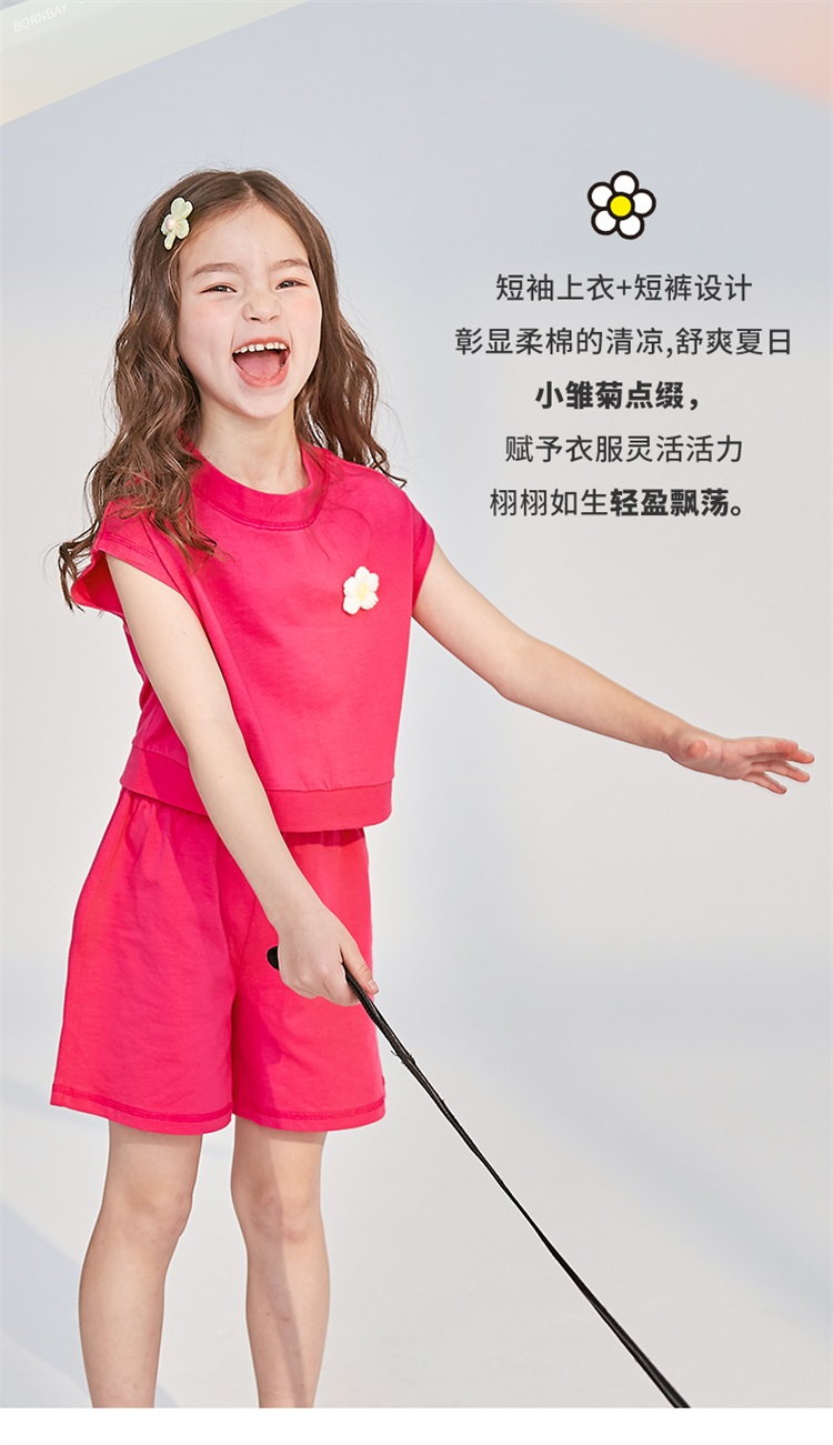 贝贝怡夏季新品女童短袖短裤套装时尚气质女宝两件套