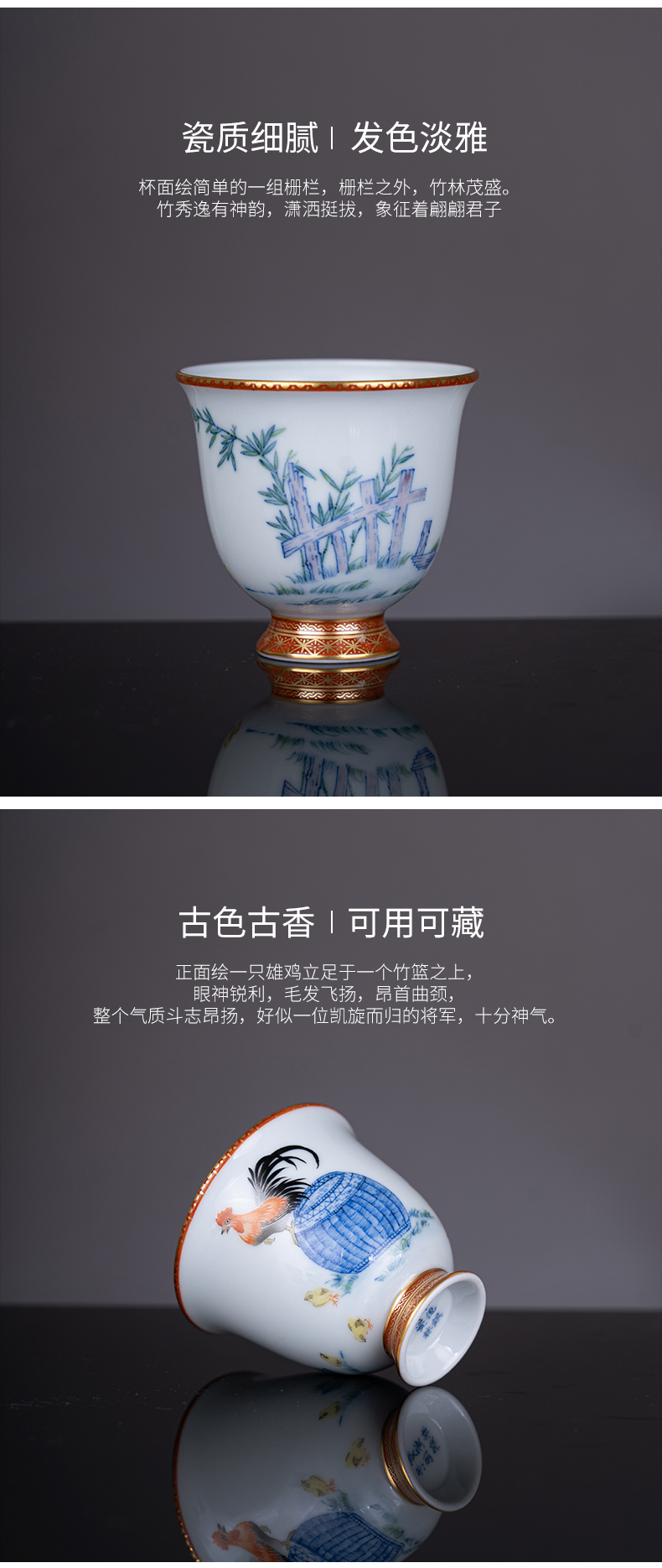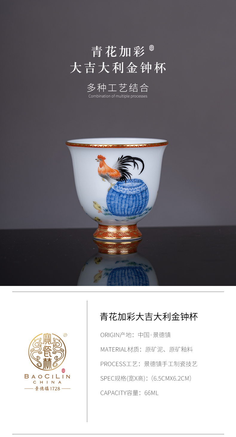 青花加彩大吉大利金钟杯