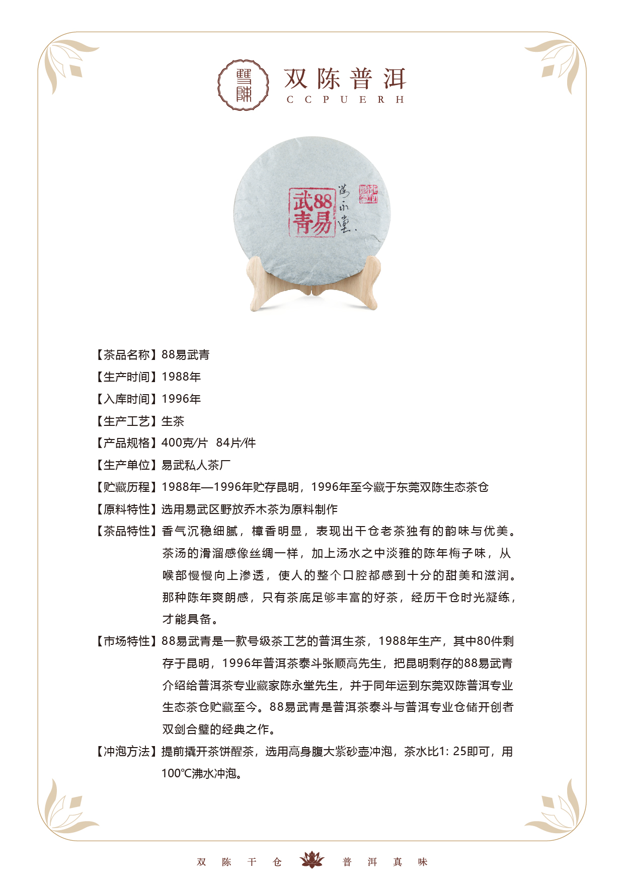 1988年易武青饼 普洱茶生茶【用于展示,勿拍】