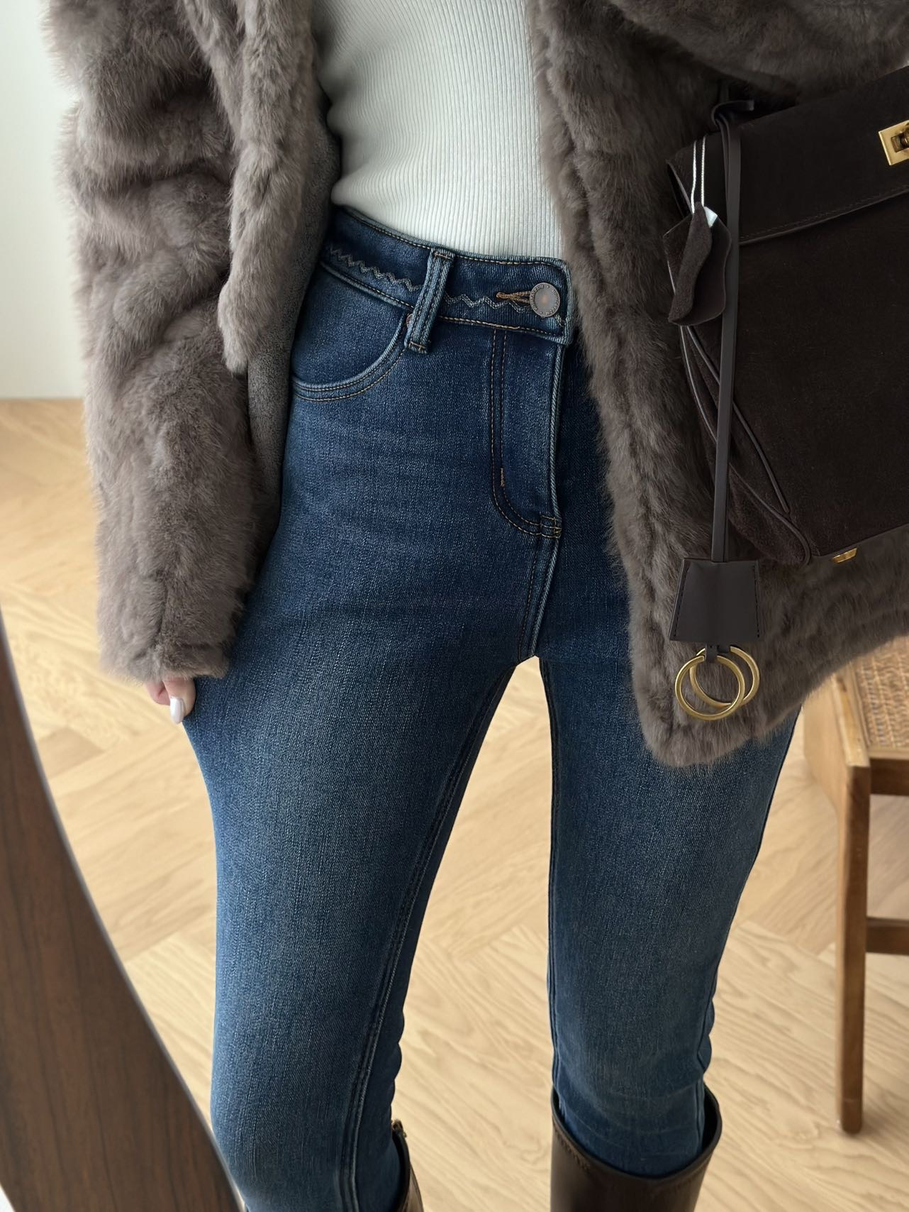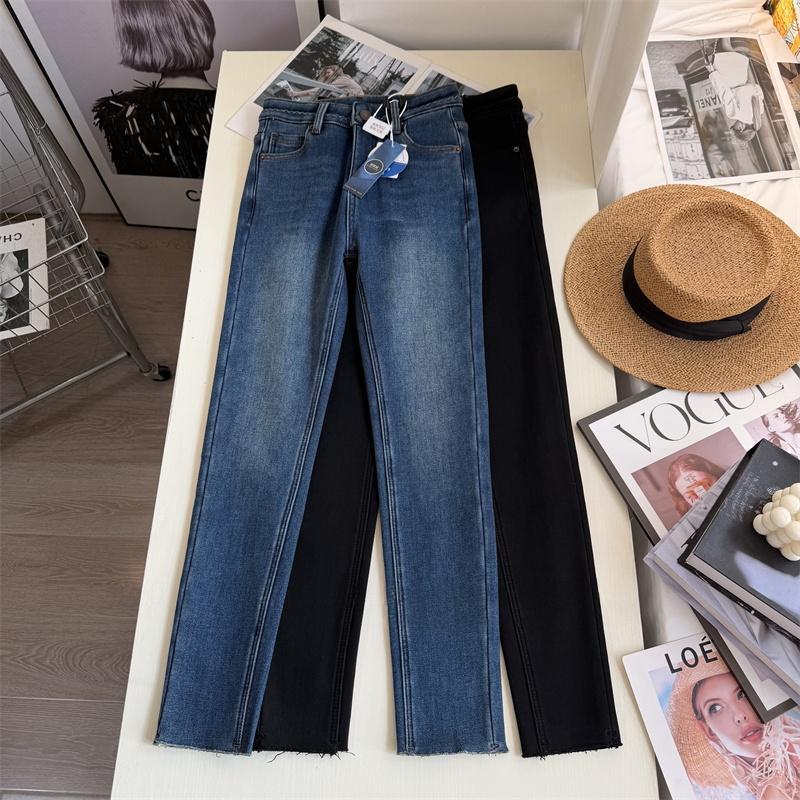 软牛仔面料有弹力,穿上柔软不勒肉呢!