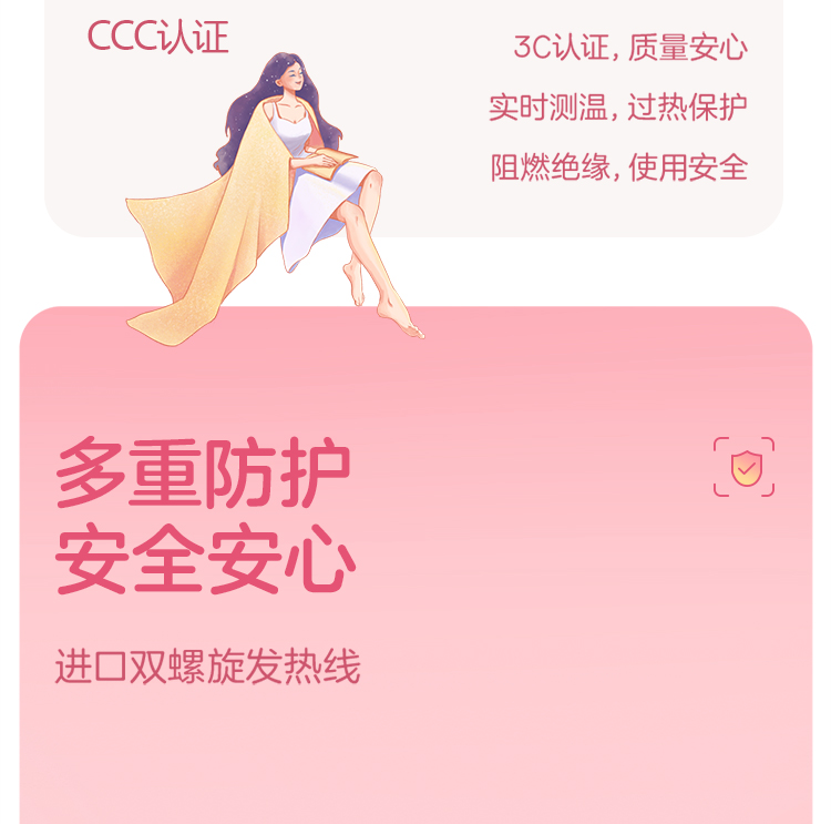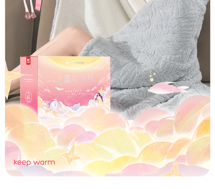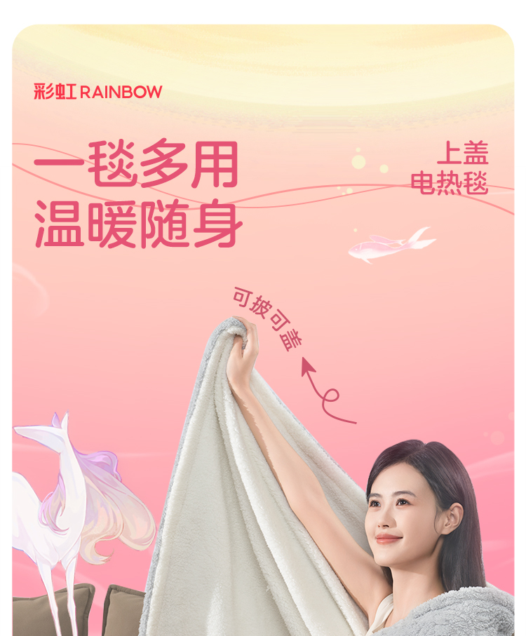 彩虹电热毯(长1.8*宽1.5)双控双温电热毯(双人印花)1356【花色随机】