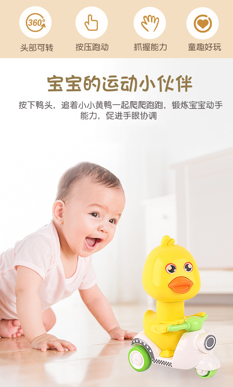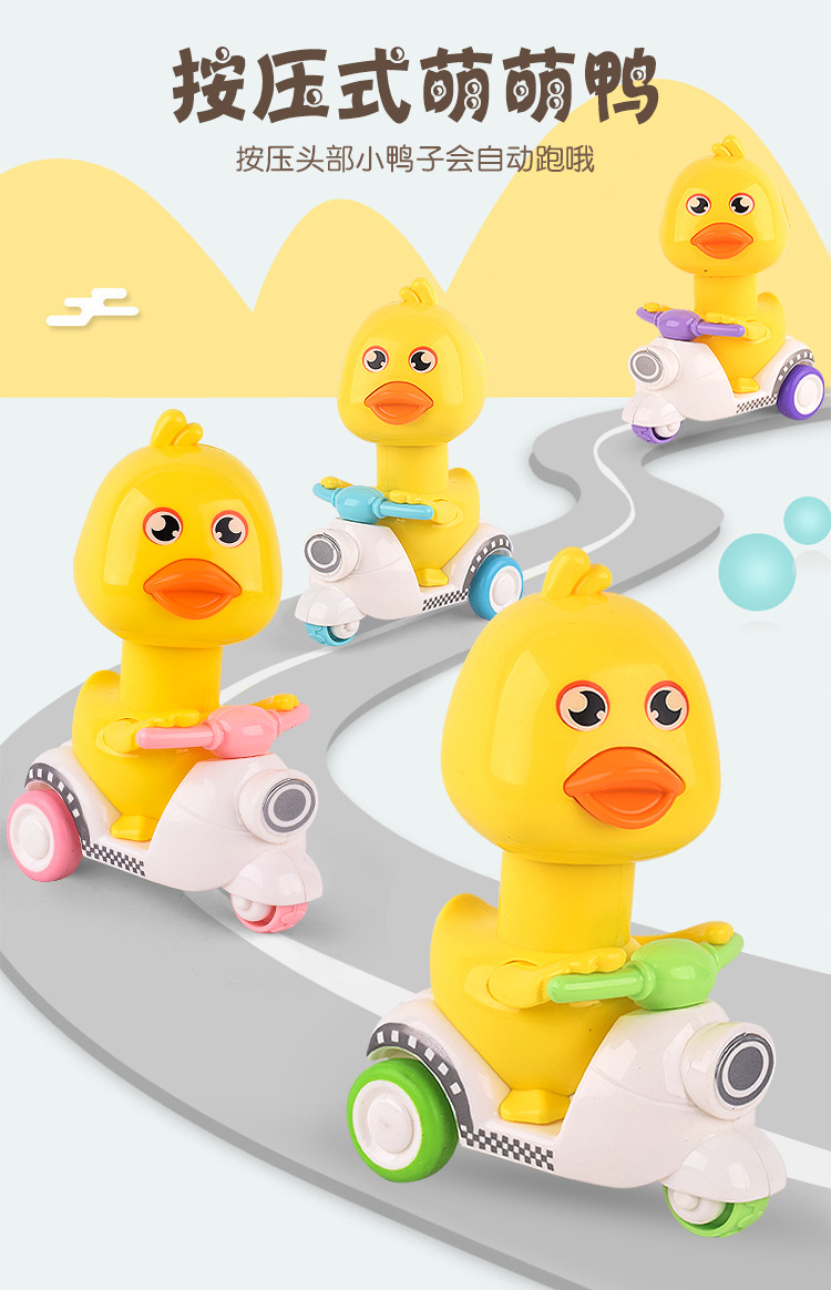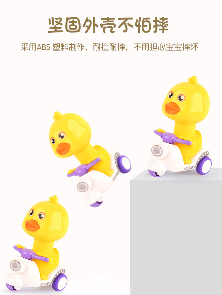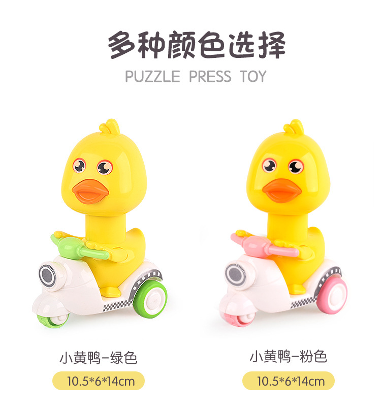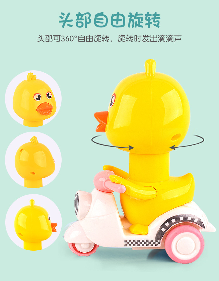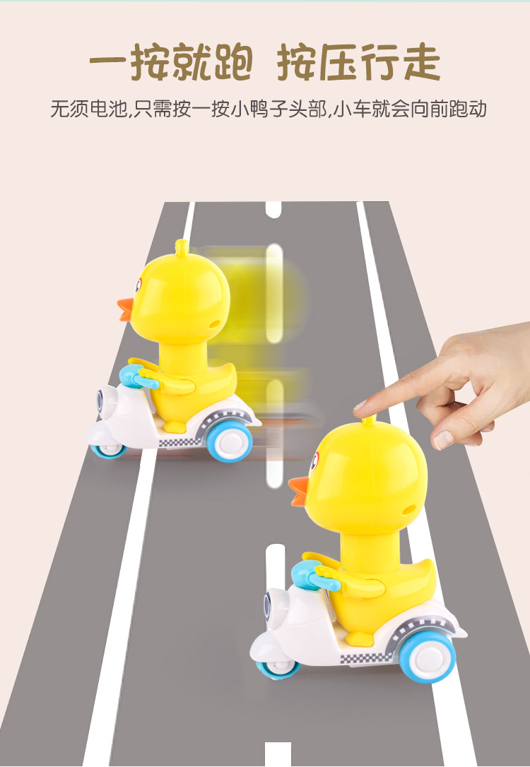【头部360°可旋转 一按就跑】按压回力萌萌鸭玩具车卡通惯性小黄鸭摩托车儿童玩具