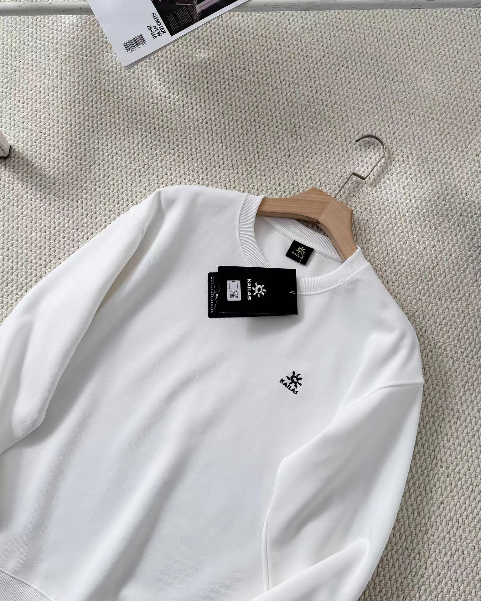 早春新款刺绣圆领套头休闲卫衣!jing典圆领:不挑身材,利落百搭,单穿叠穿都能 hold 住!小太阳刺绣 logo:低调精zhi的小刺绣点缀胸前,qing奢感藏在细节里,不张扬却自带gao级感!三色可选:干净白、gao级灰、jing典黑,都是永不过时的基础色,轻松适配各种风格!新疆产地棉:高支纱线织就,棉柔亲肤,像被云朵包裹般轻盈,保暖不闷汗!高弹抗造:多次洗涤仍弹力在线,运动摩擦也不易起球,久穿不易变形掉色!细节拉满:高密度螺纹领口 + 螺纹袖口,松紧适中贴合不勒;通肩压条设计防止肩部坍塌;下摆走线工整扎实,耐穿度拉满!日常通勤配西装裤,休闲出街搭牛仔裤 ,运动裤,叠穿衬衫 ,外套也毫无压力,是衣柜里怎么搭都不会错的刚需款!