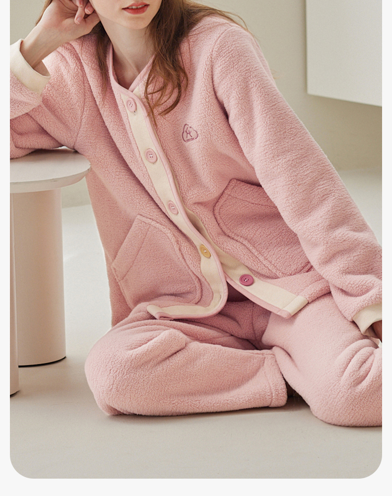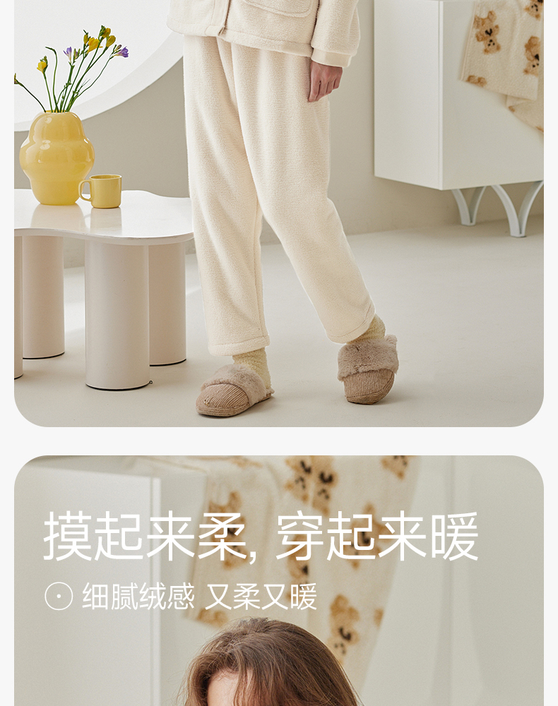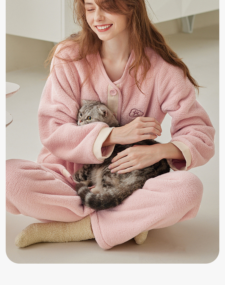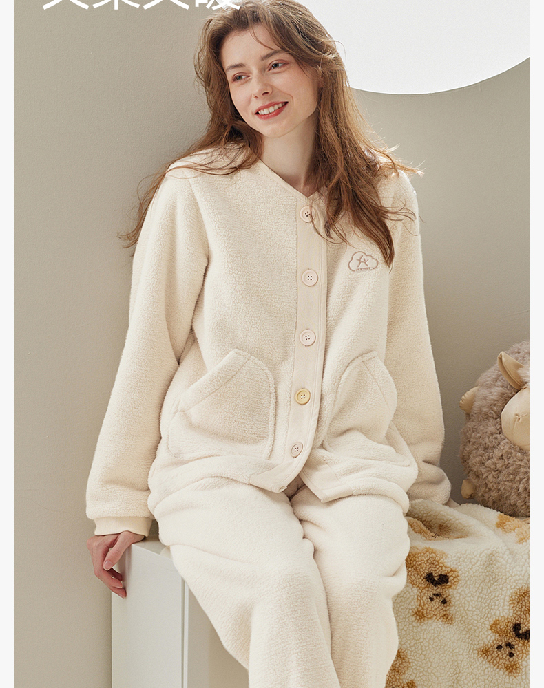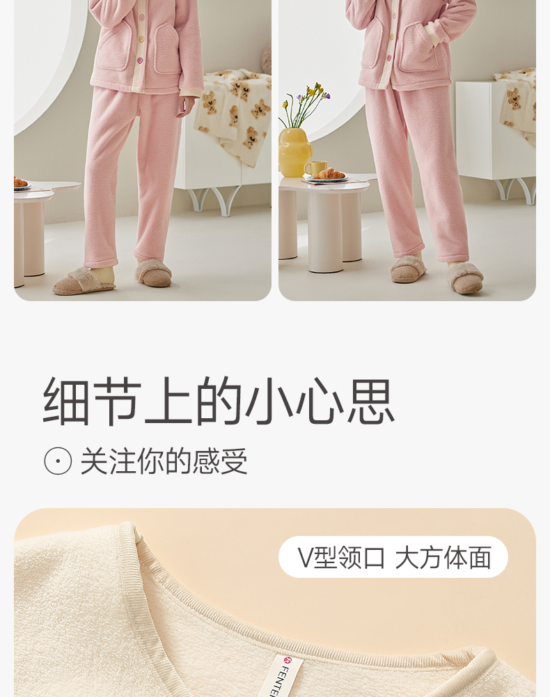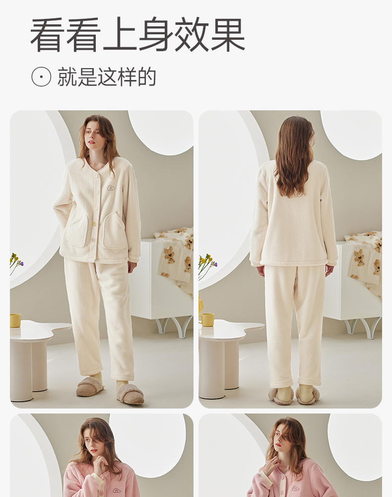 <有书独家>芬腾珊瑚绒女士睡衣秋冬加绒套装法兰绒加厚保暖加大码家居服冬季