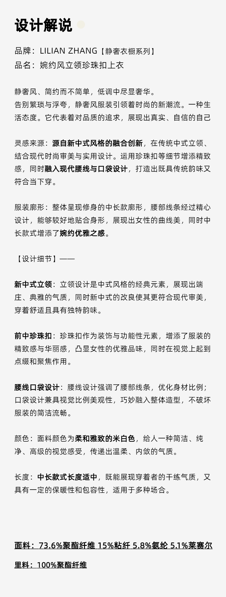 E“定制”——静奢风——风尚之选———婉约风立领珍珠扣上衣外套 2405037