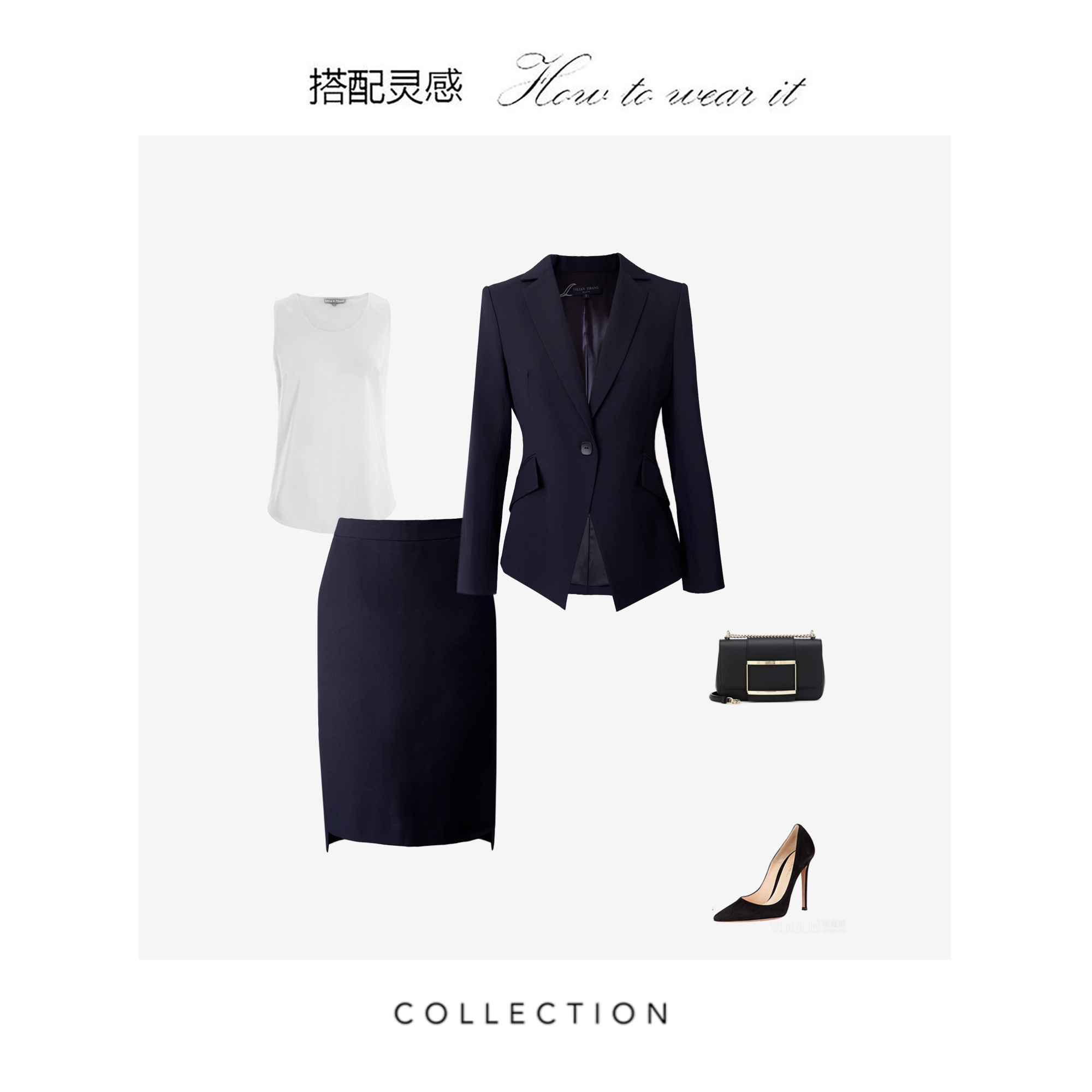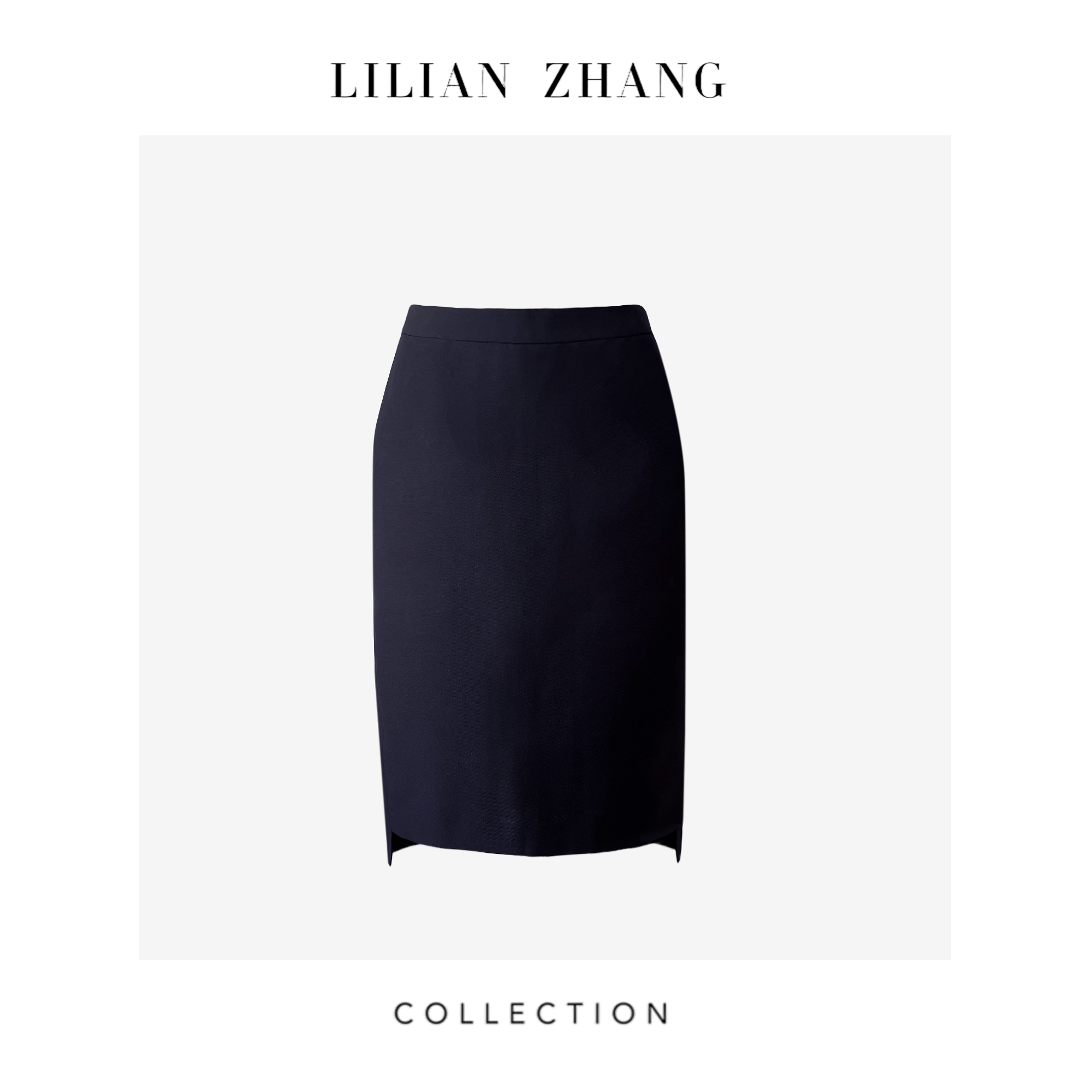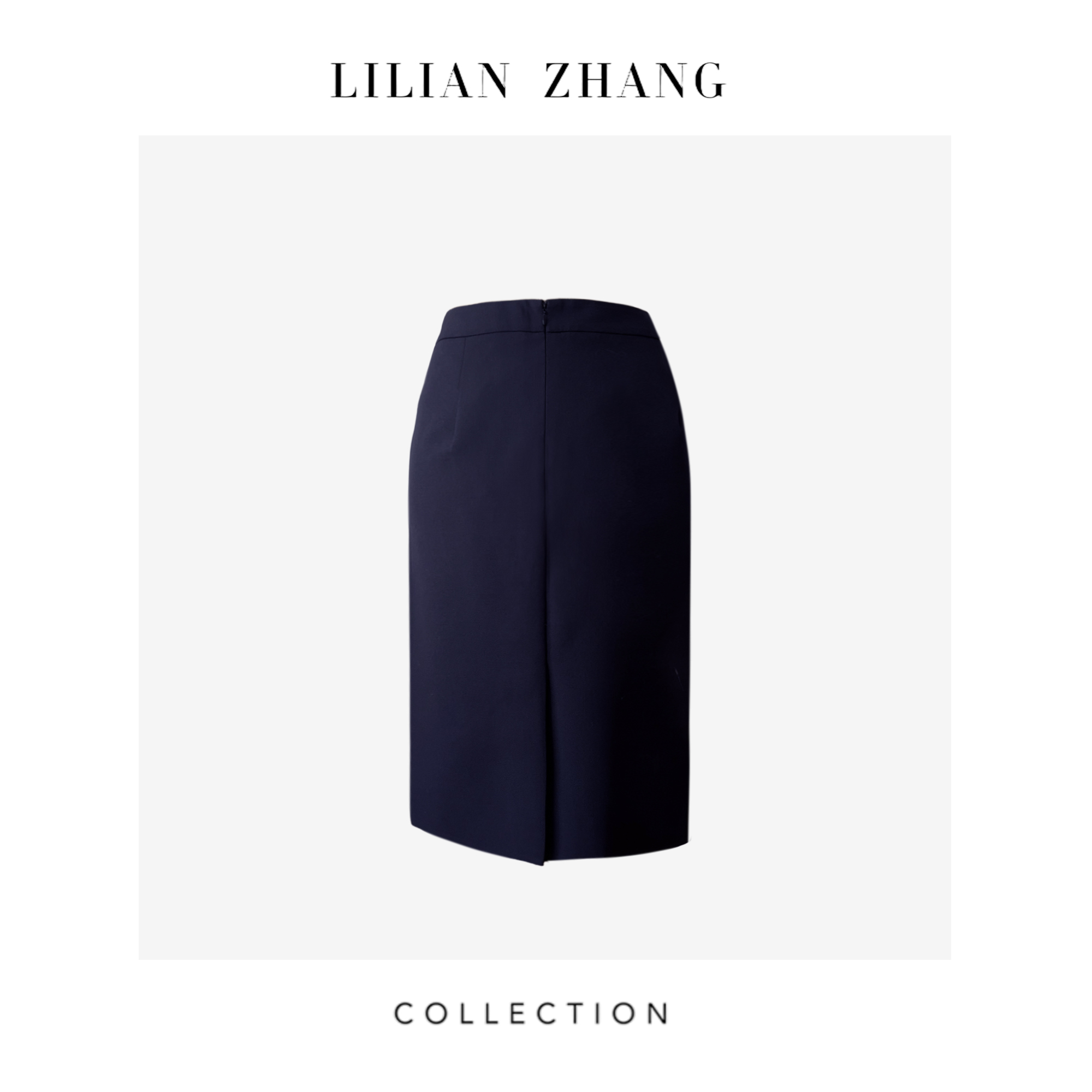 LILIAN ZHNAG 定制—都市力量——天丝羊毛藏青色西装半裙 2403018