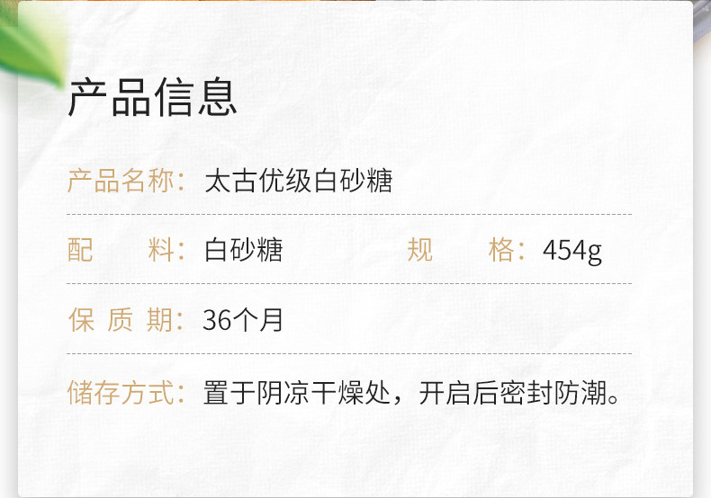 太古优级白砂糖食用糖454g 甜品饼干蛋糕面包家用细砂糖烘培原料