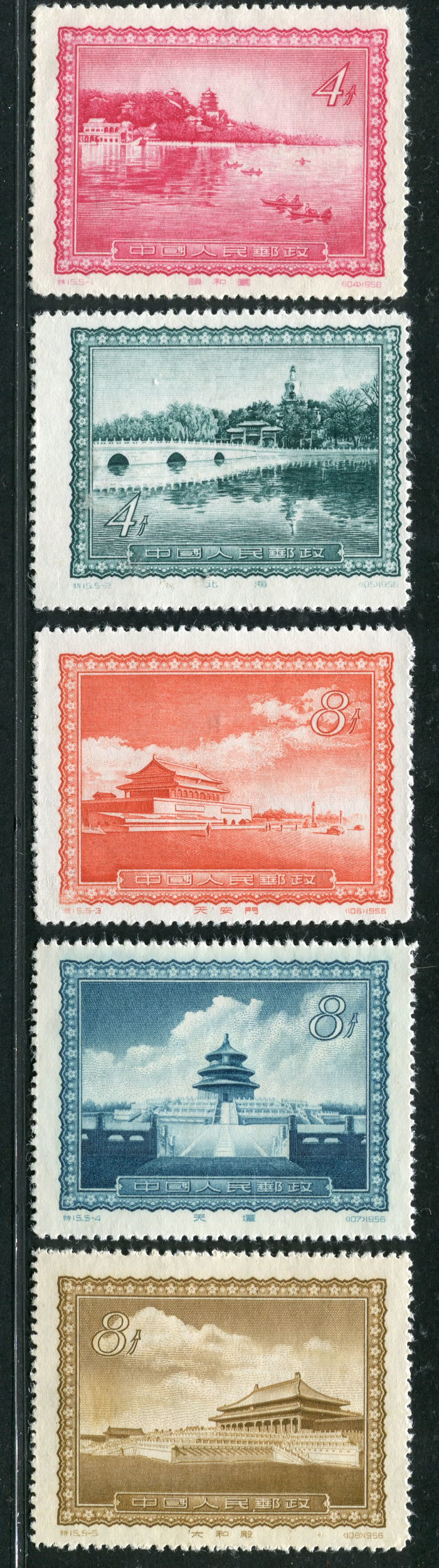 原套票当中的(106)天安门的背景设计为朝阳冉冉升起,彩霞满天,光芒向天空四射。但由于当时印刷技术不过关,印出来的邮票没有达到预期的效果。在审查这套邮票时,有人硬把这套邮票和“政治”扯到一起,指出天安门不伟大、不完美、天空阴沉、沉闷,好似乌云翻滚,缺乏祥和气氛。1956年6月9日,邮电部决定首都名胜天安门图一枚暂停发行。6月12日急电全国收回销毁。因此,在发行日这一天,大家只能买一套5枚邮票中的4枚。新印刷的天安门邮票于1957年2月20日发行。