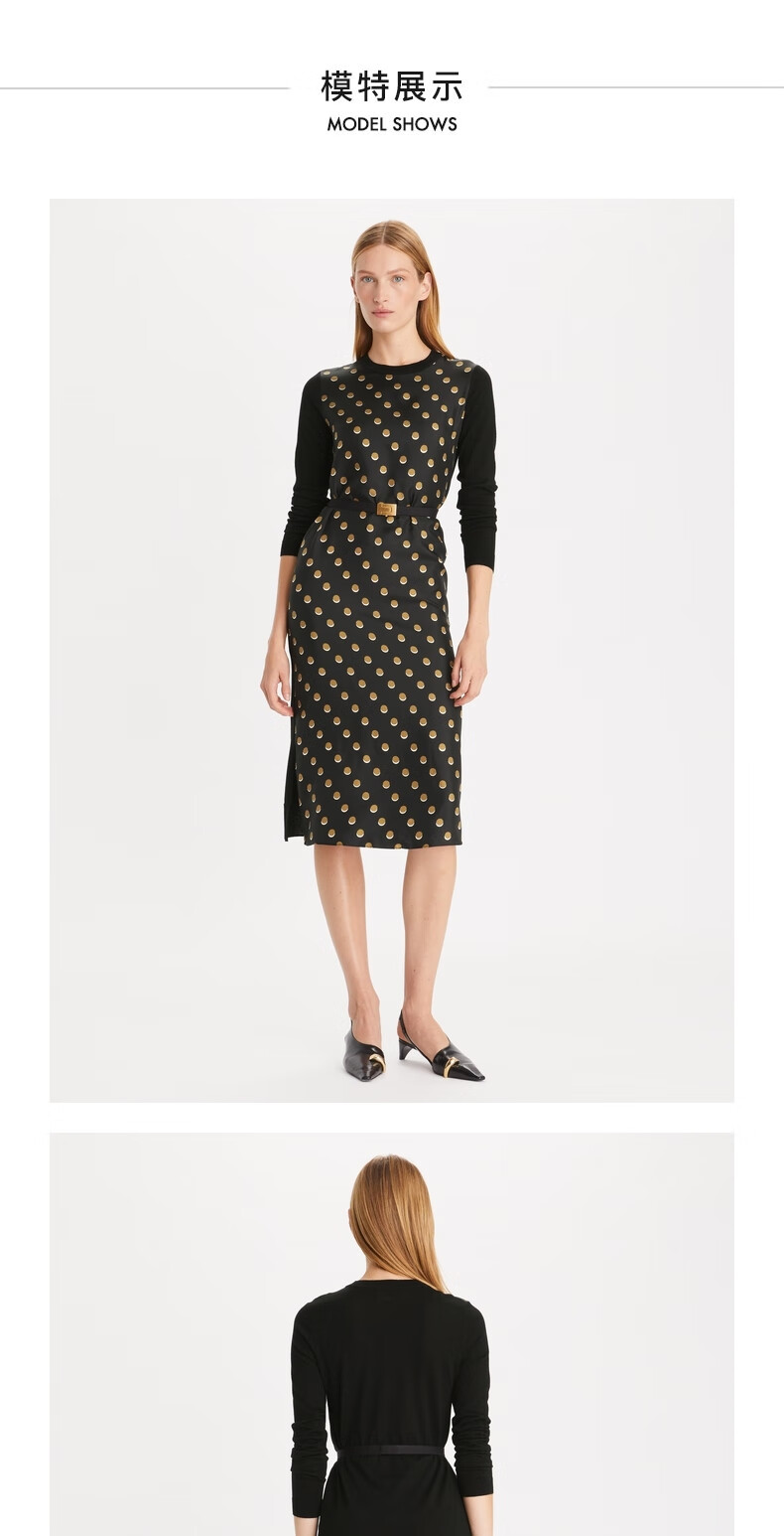 【1F】Tory Burch 汤丽柏琦 圆点长袖束腰连衣裙
