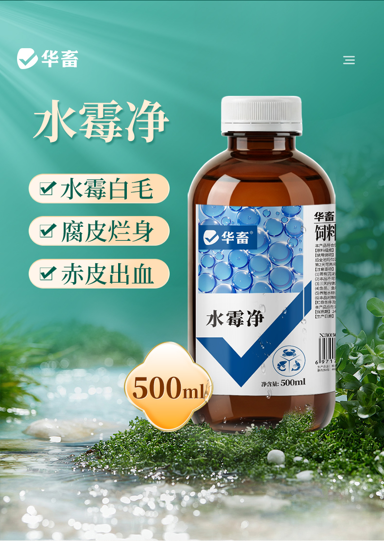 华畜水霉净鱼药鱼塘烂身烂尾水霉病净清消毒杀菌水产养殖治疗