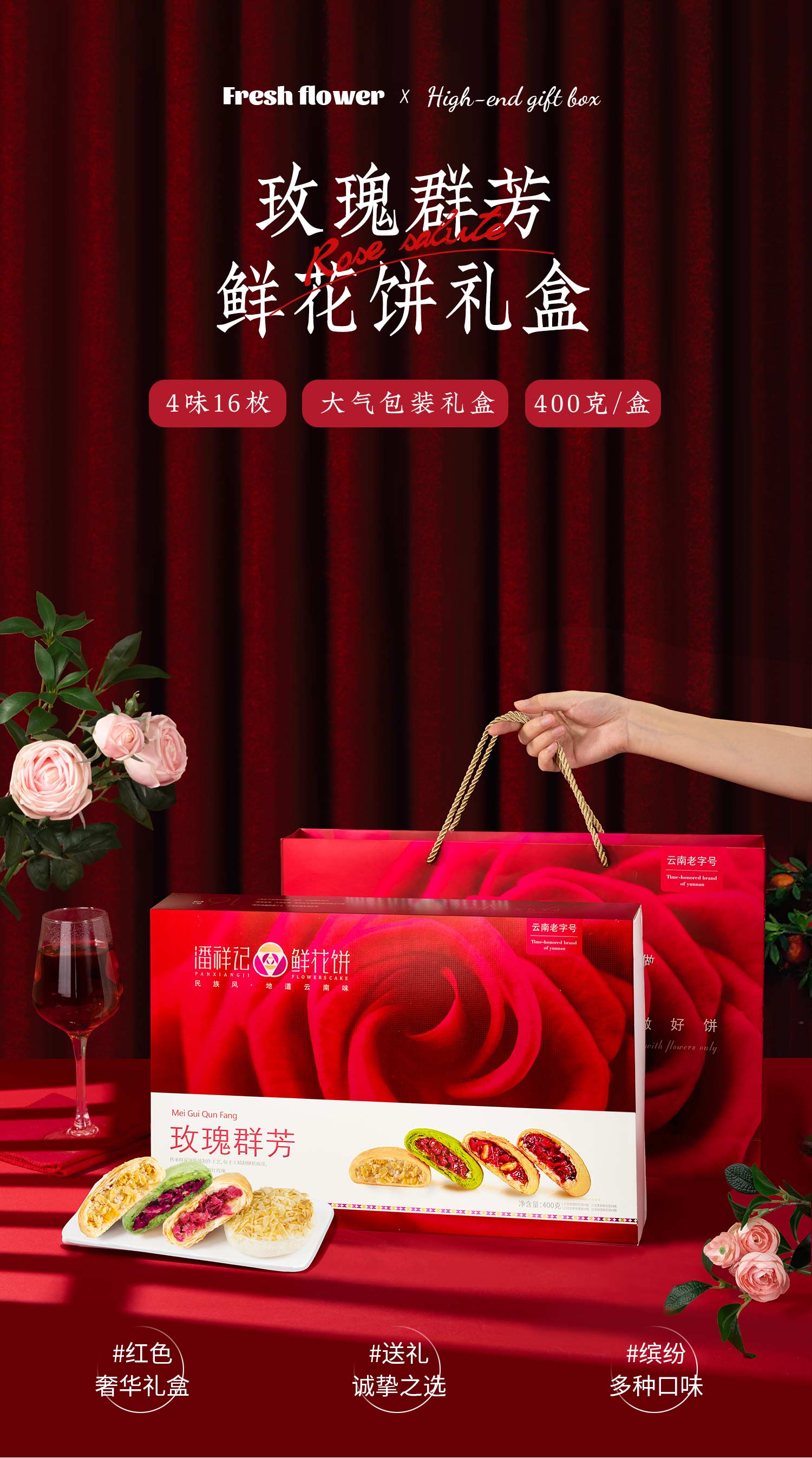 潘祥记官方旗舰店[400g玫瑰鲜花饼]礼盒