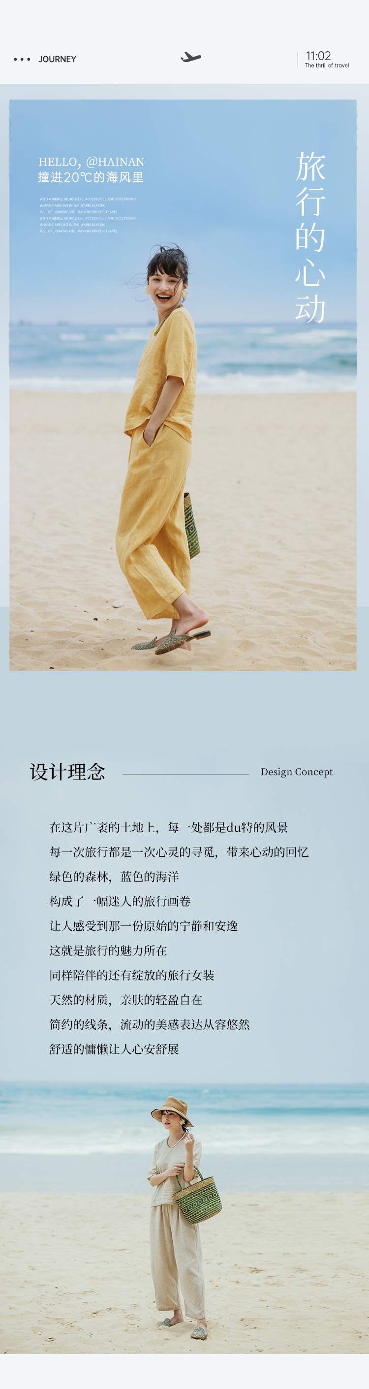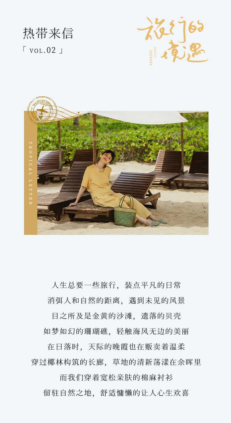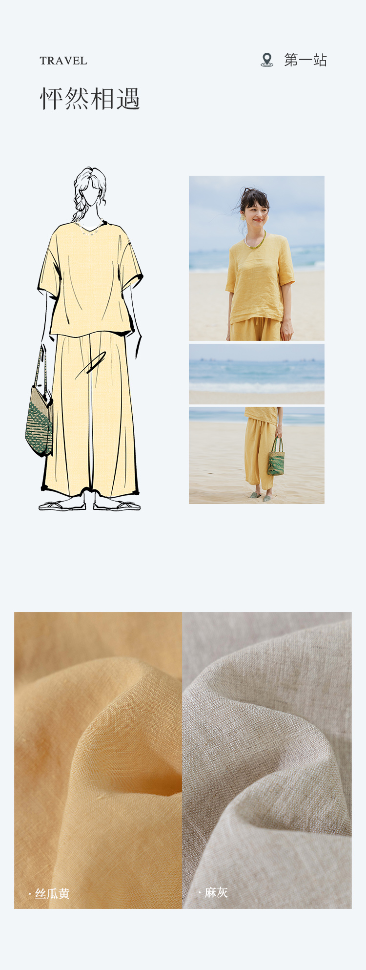 以天然亚麻为载体,融合热烈色彩与自在剪裁为身在城市、心怀远方的女性提供兼具美学与舒适的旅行着装