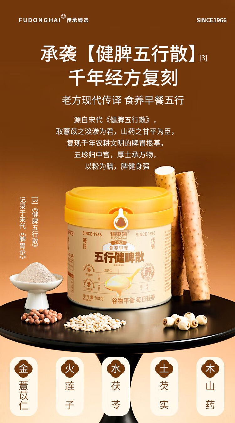 福东海芡实山药五珍粉500克 四神汤山药莲子茯苓芡实五早餐代餐