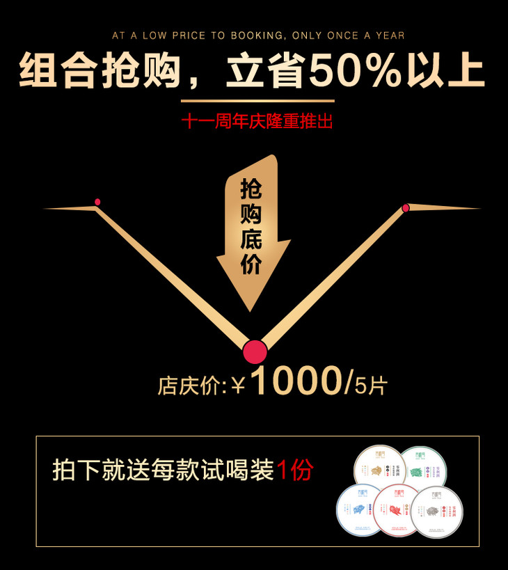 【整套特惠】五行茶《金木水火土》组合套装 357克*5饼 共1785克