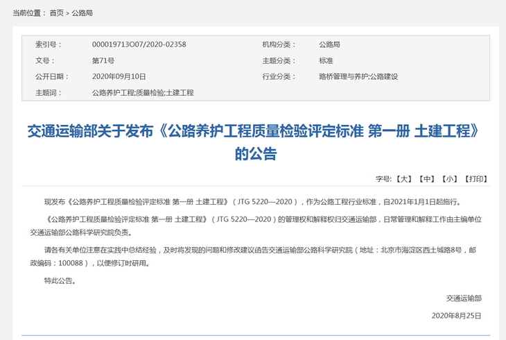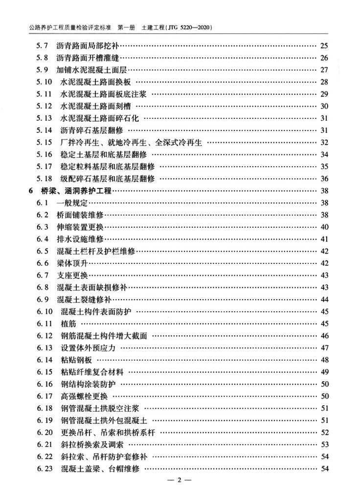 公路养护工程质量检验评定标准 第一册 土建工程 JTG 5220-2020