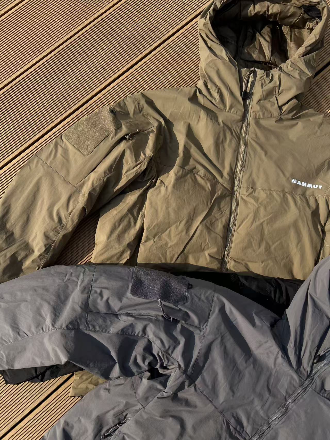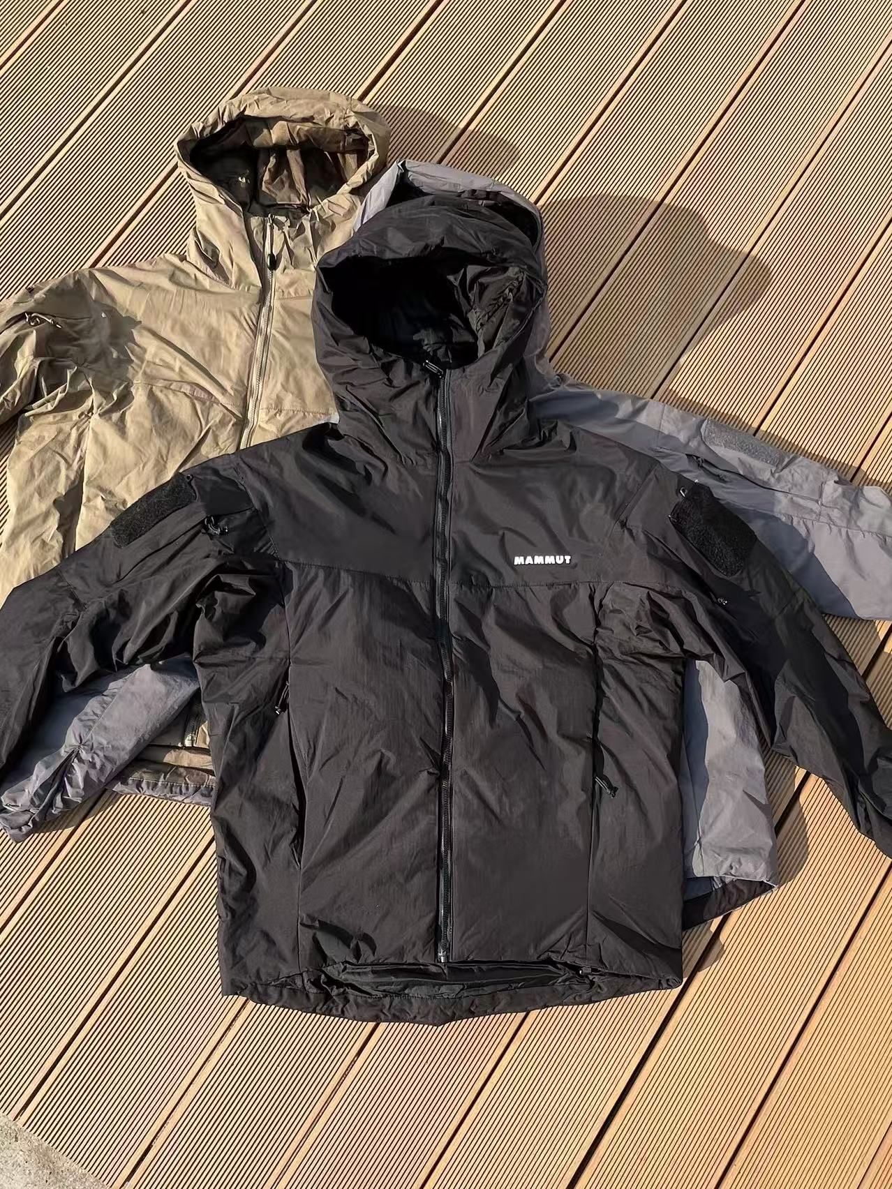 轻便保暖,不显臃肿,防水;全身立体裁剪上身无束缚感,两侧带有魔术贴标志,可自行diy;下摆带抽绳;