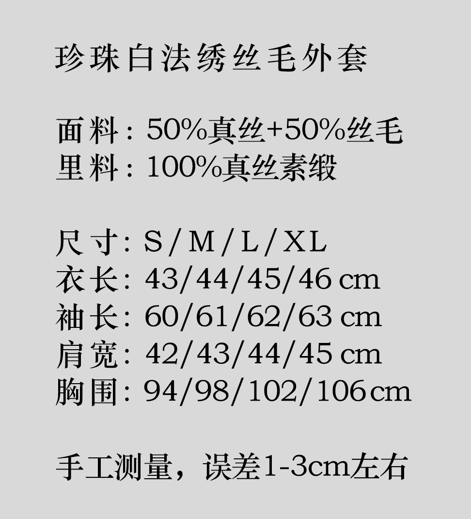 盛唐牡丹| 珍珠白法绣丝毛外套