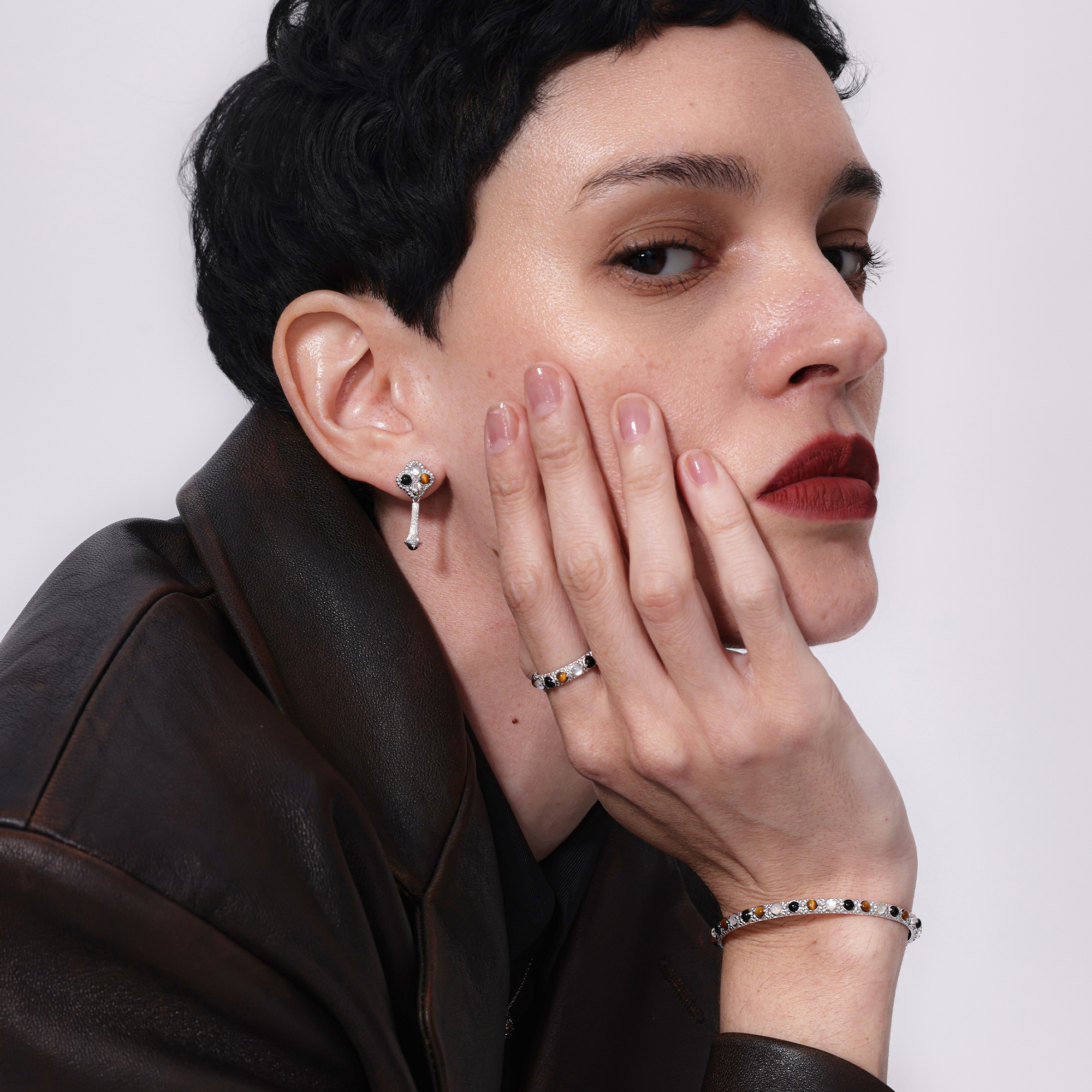 银/铑涂层 白贝/黑玛 瑙/虎眼石