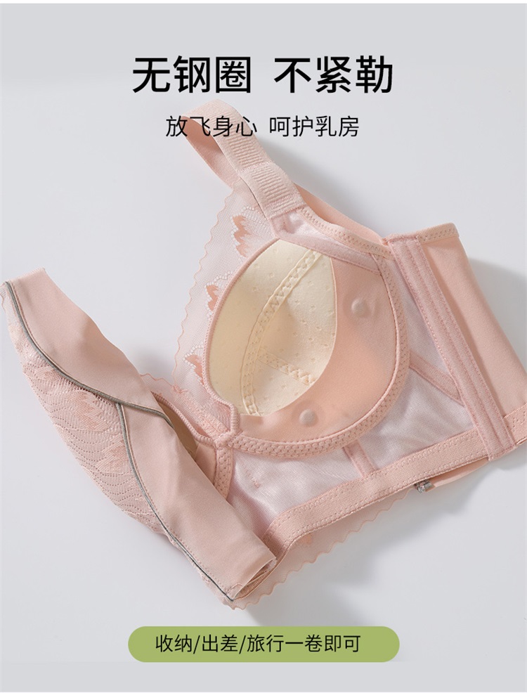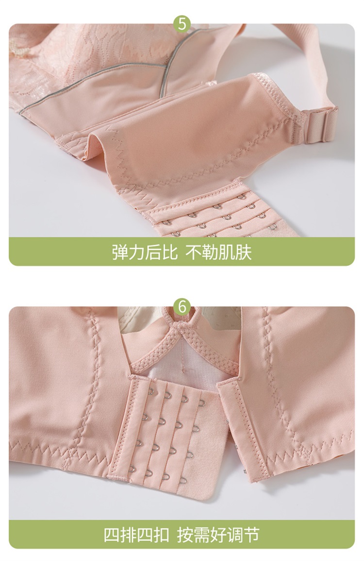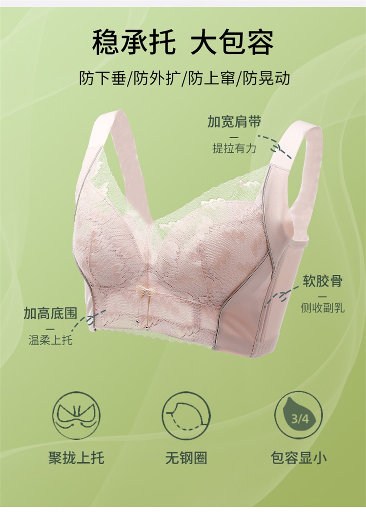 雅黛丽内衣女大胸显小美背文胸无钢圈收副乳防下垂胸罩