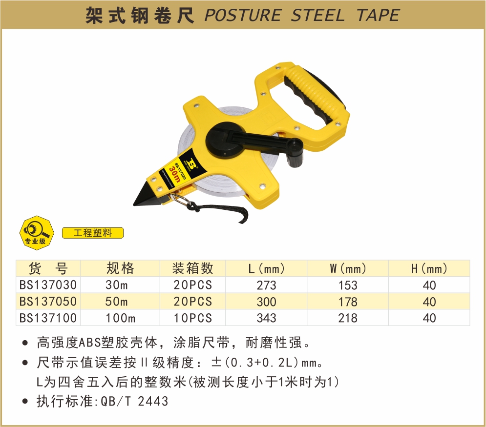 波斯架式钢卷尺BS-A7030 30m50m100m BS137030/BS137050/BS137100