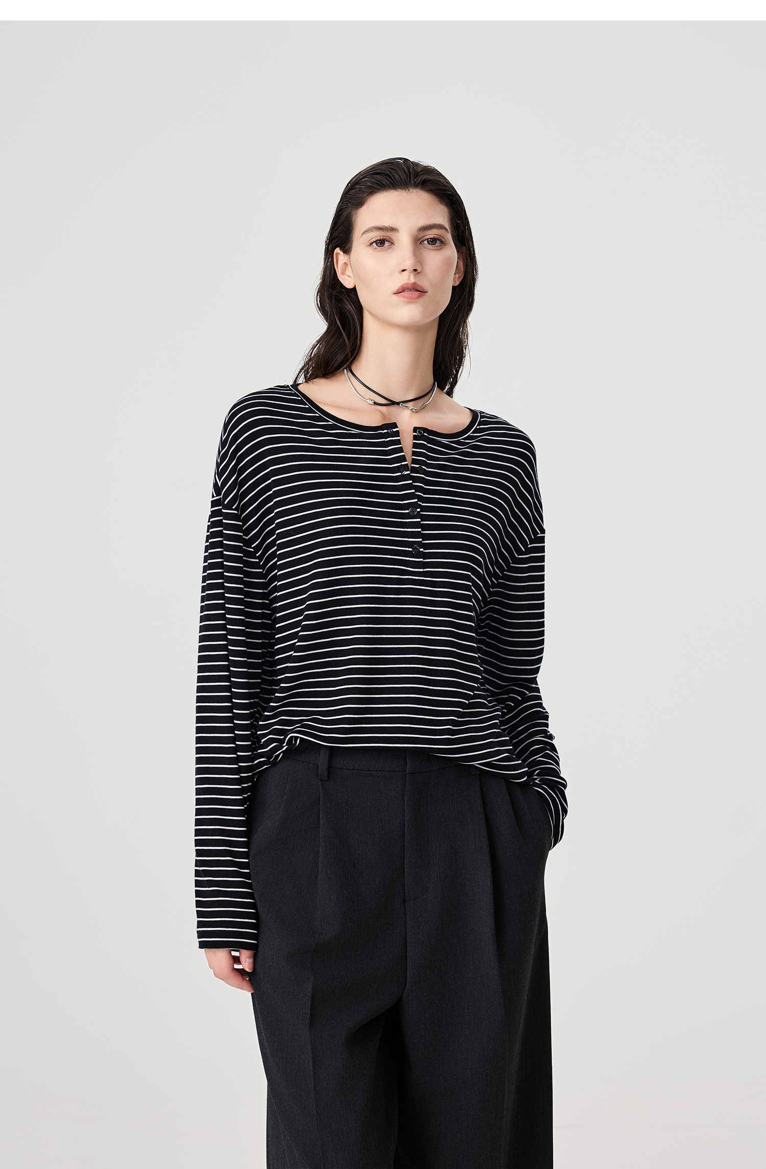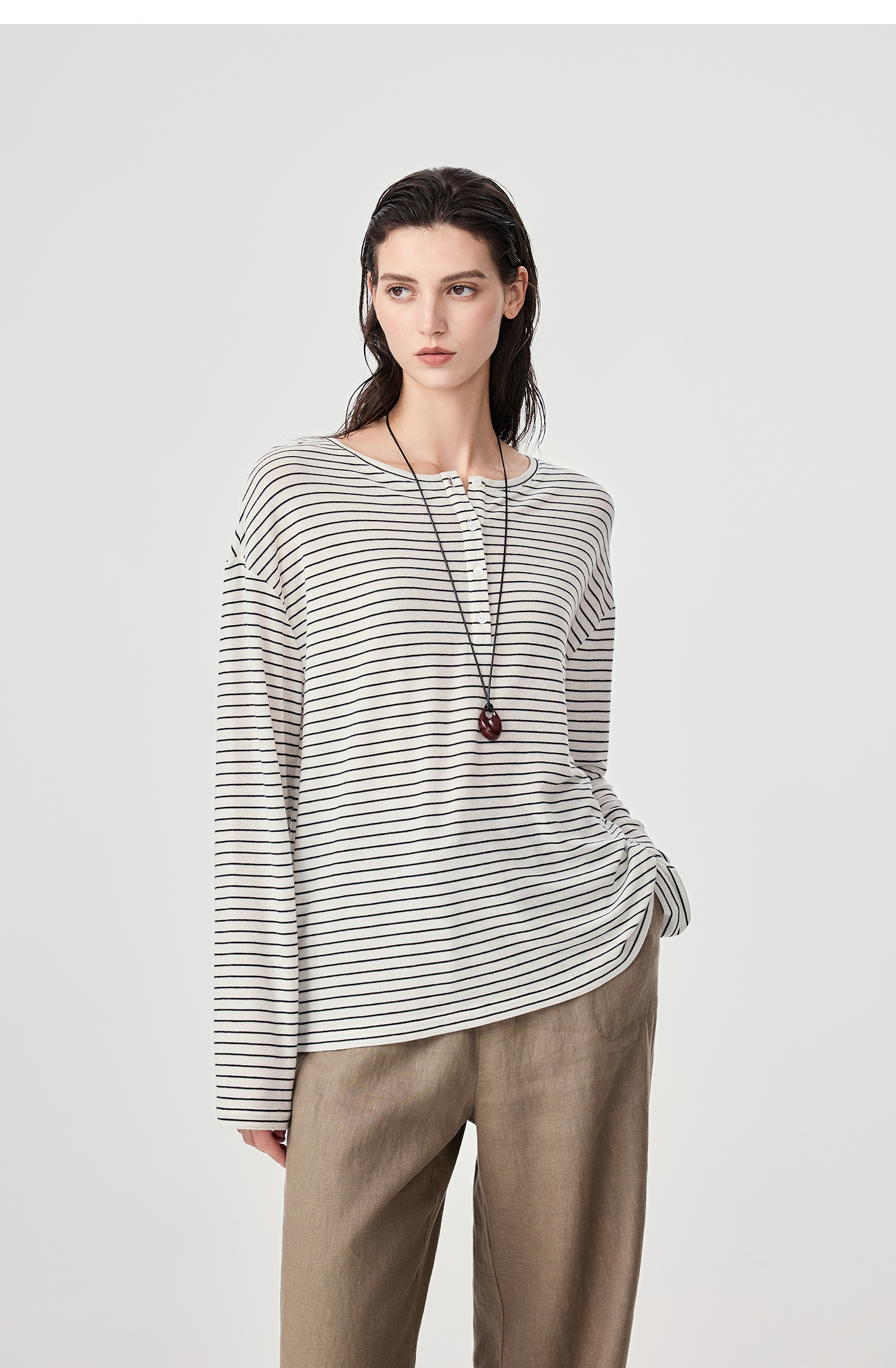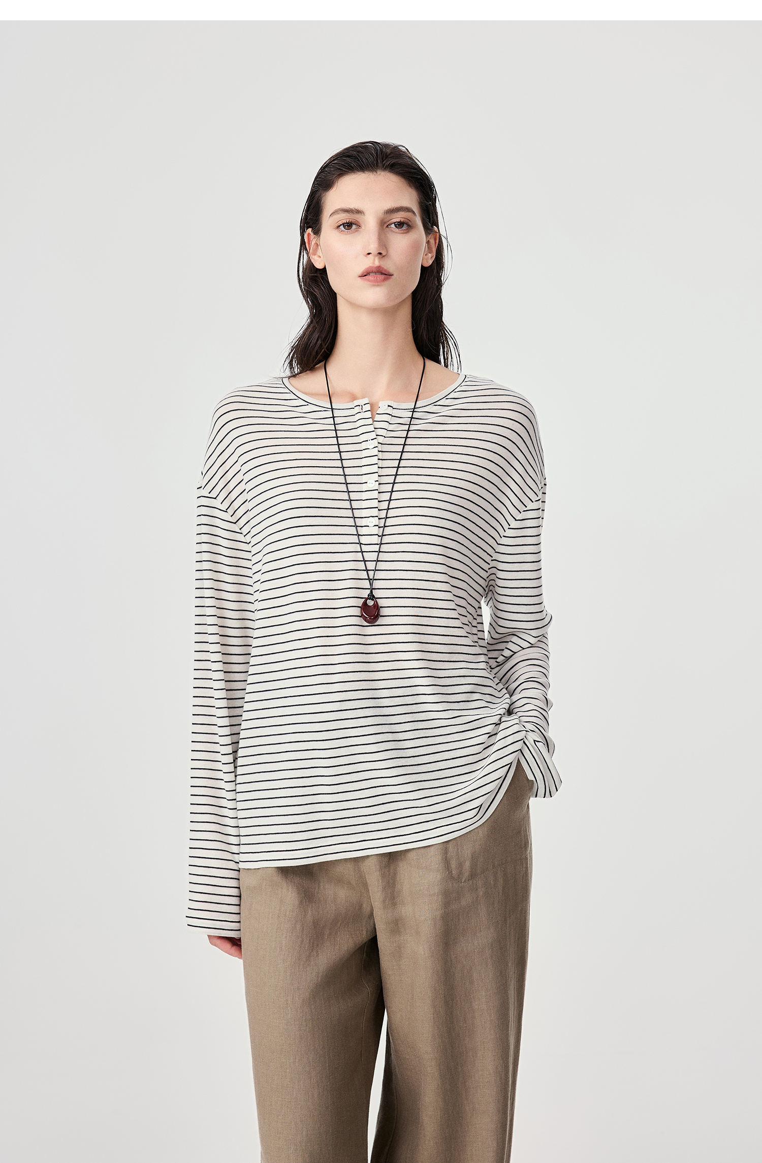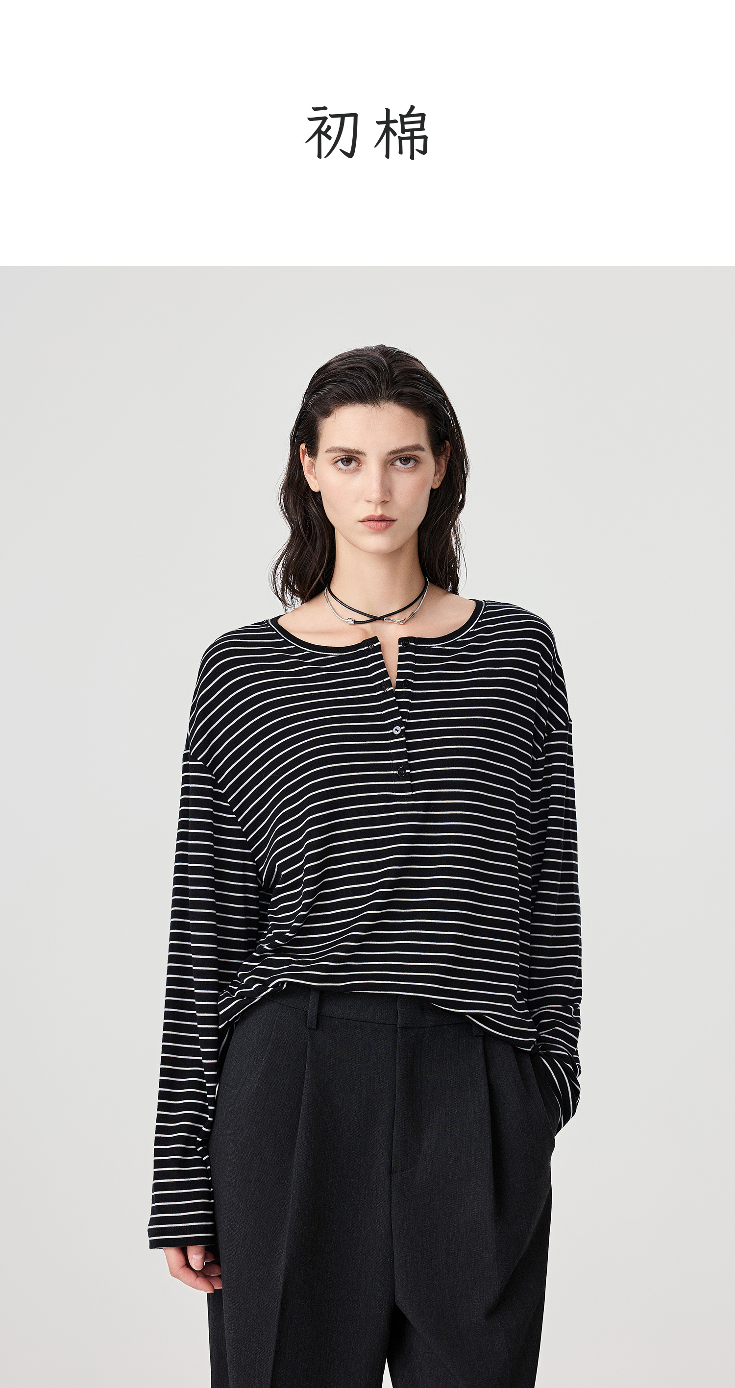 棉仓366601032-25天丝羊毛亨利领长袖T恤