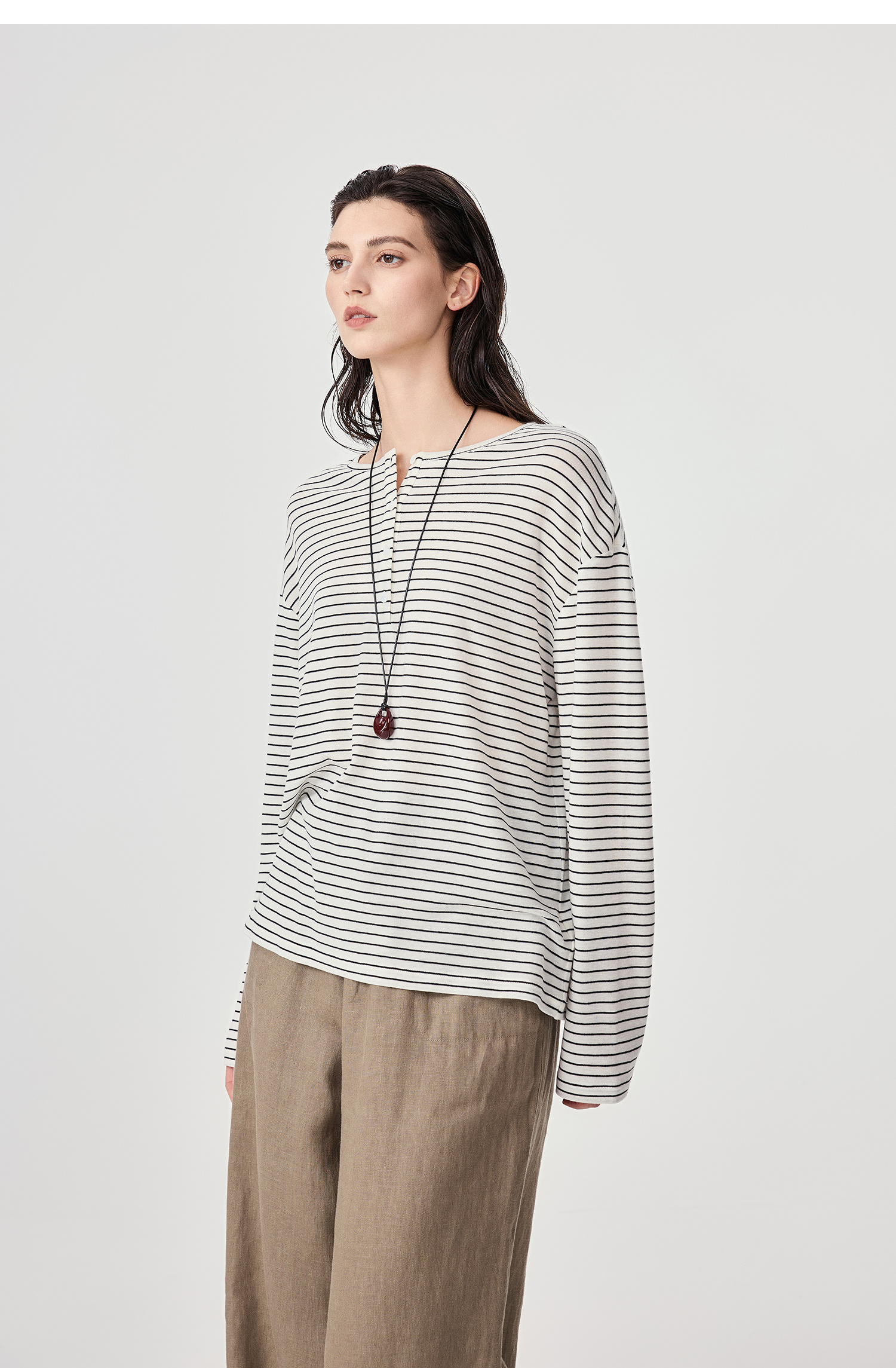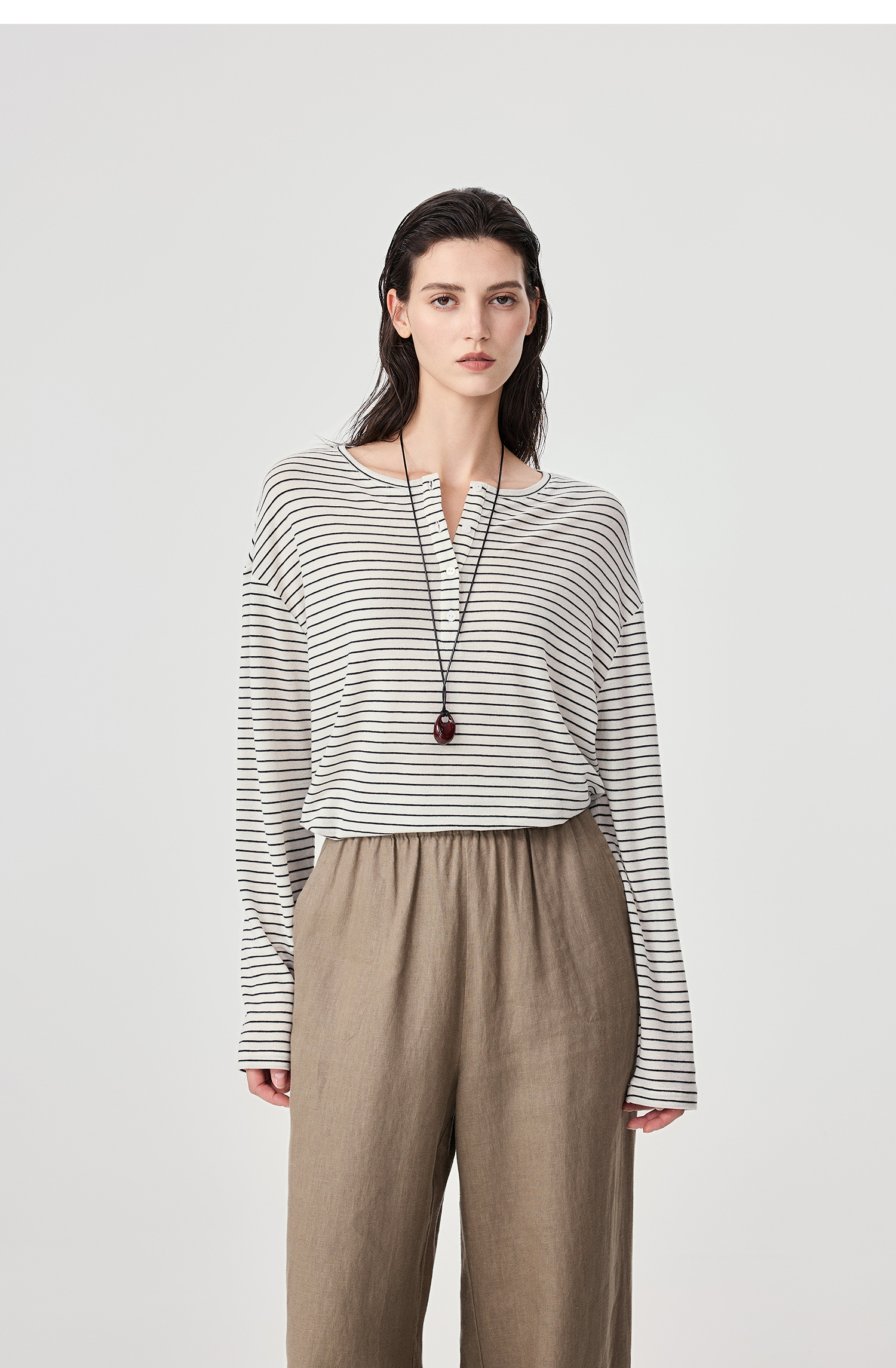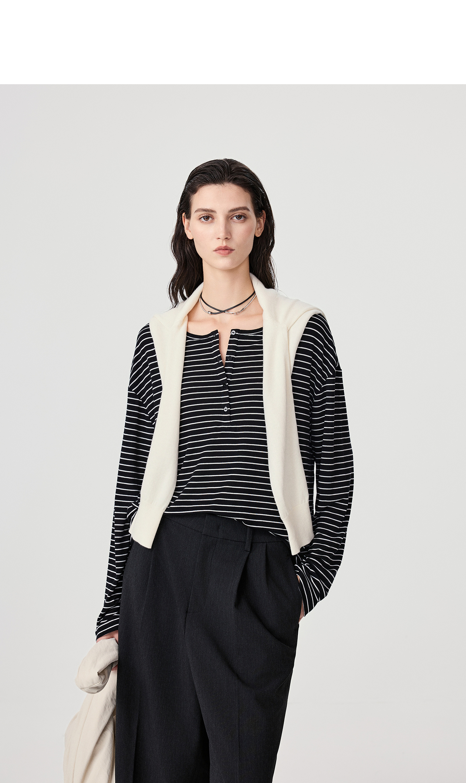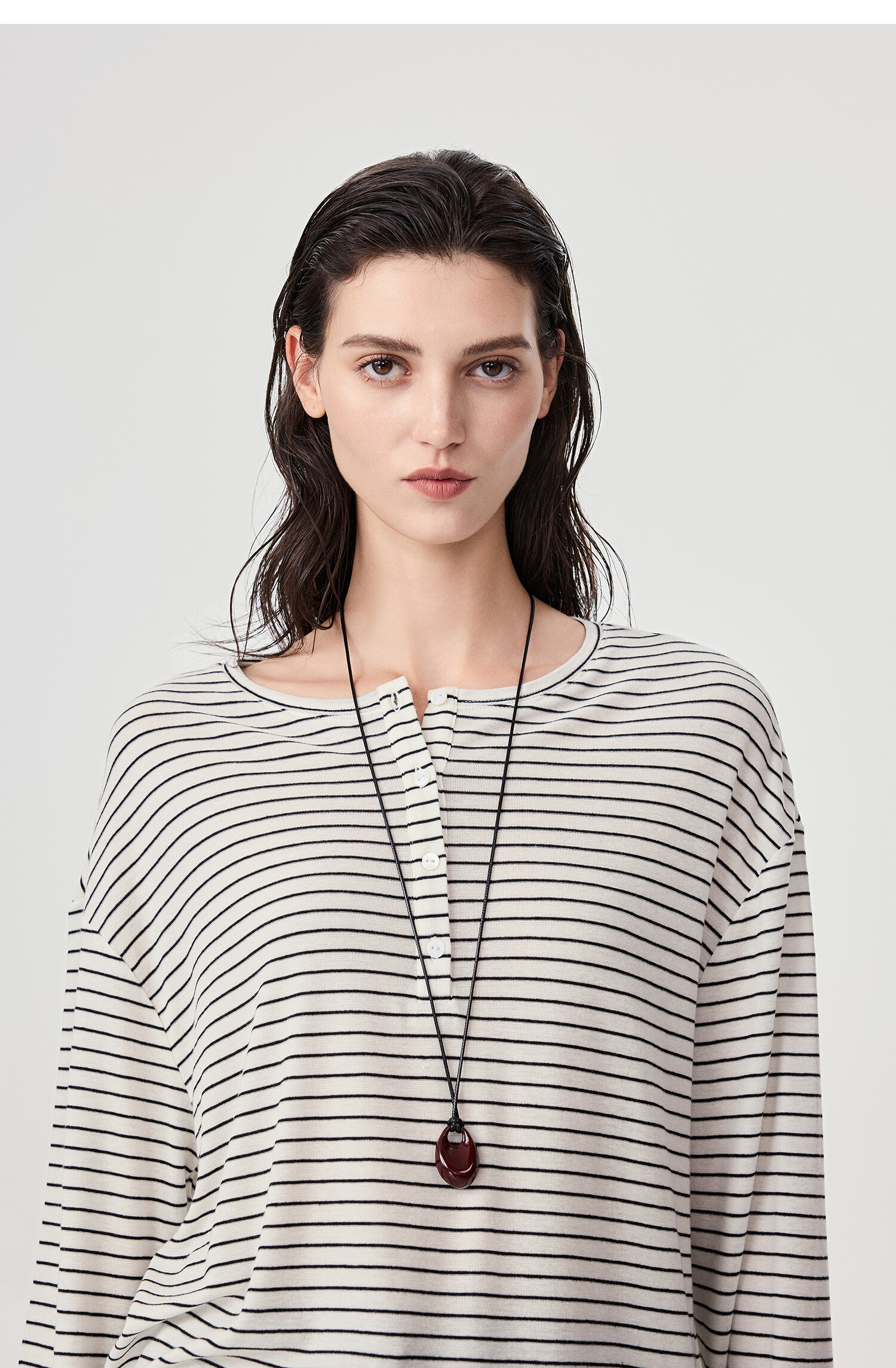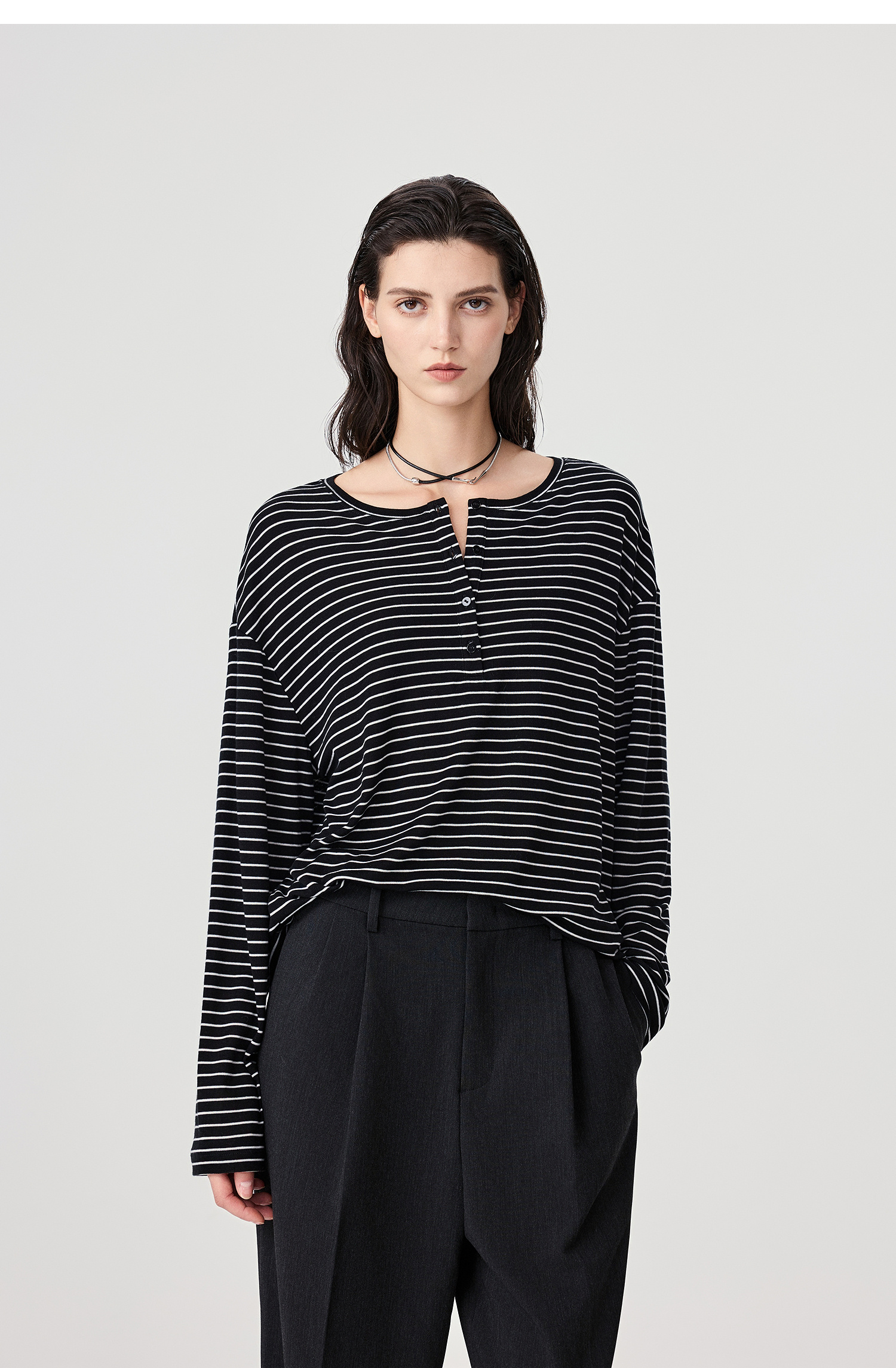 棉仓366601032-25天丝羊毛亨利领长袖T恤