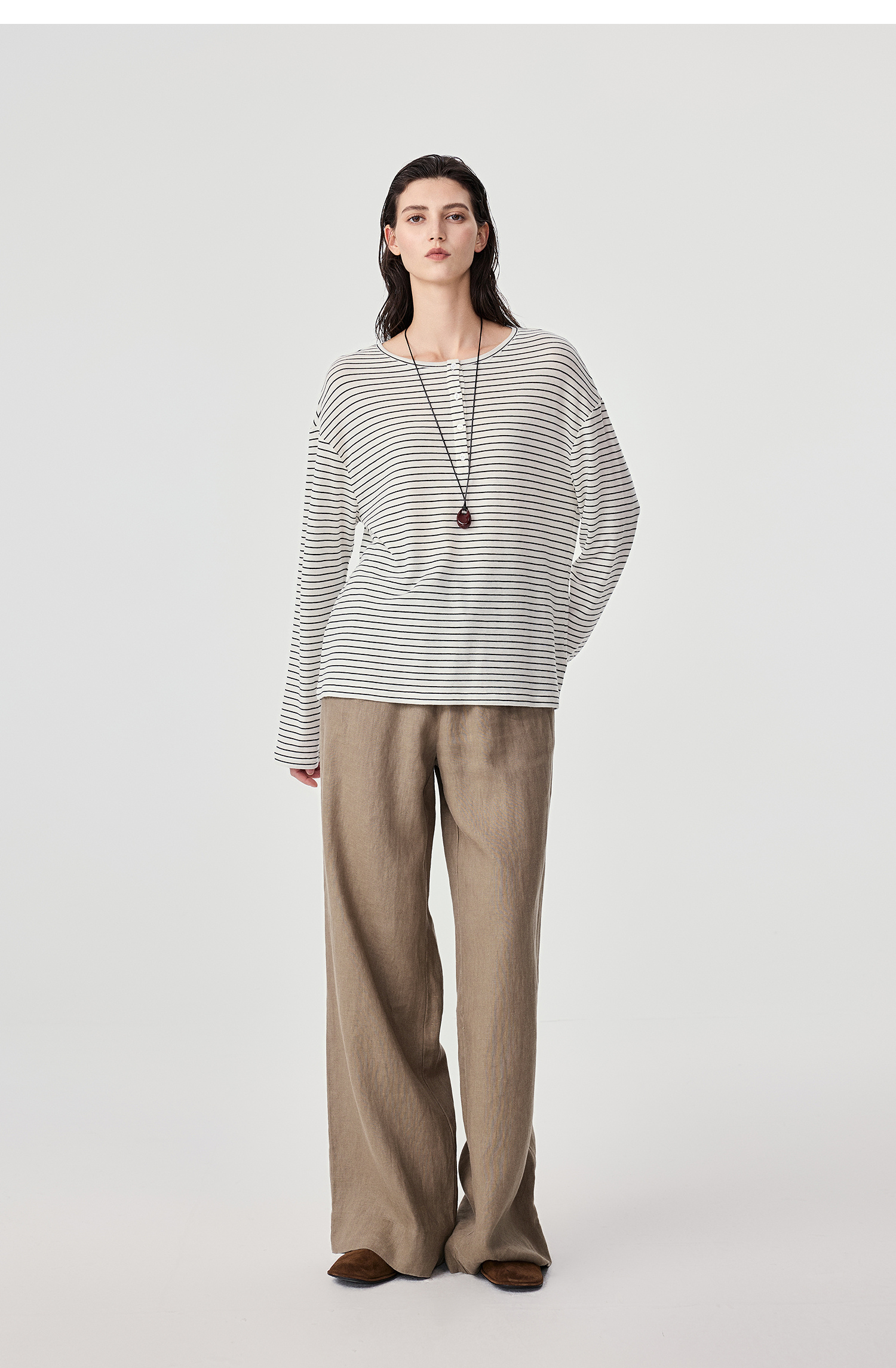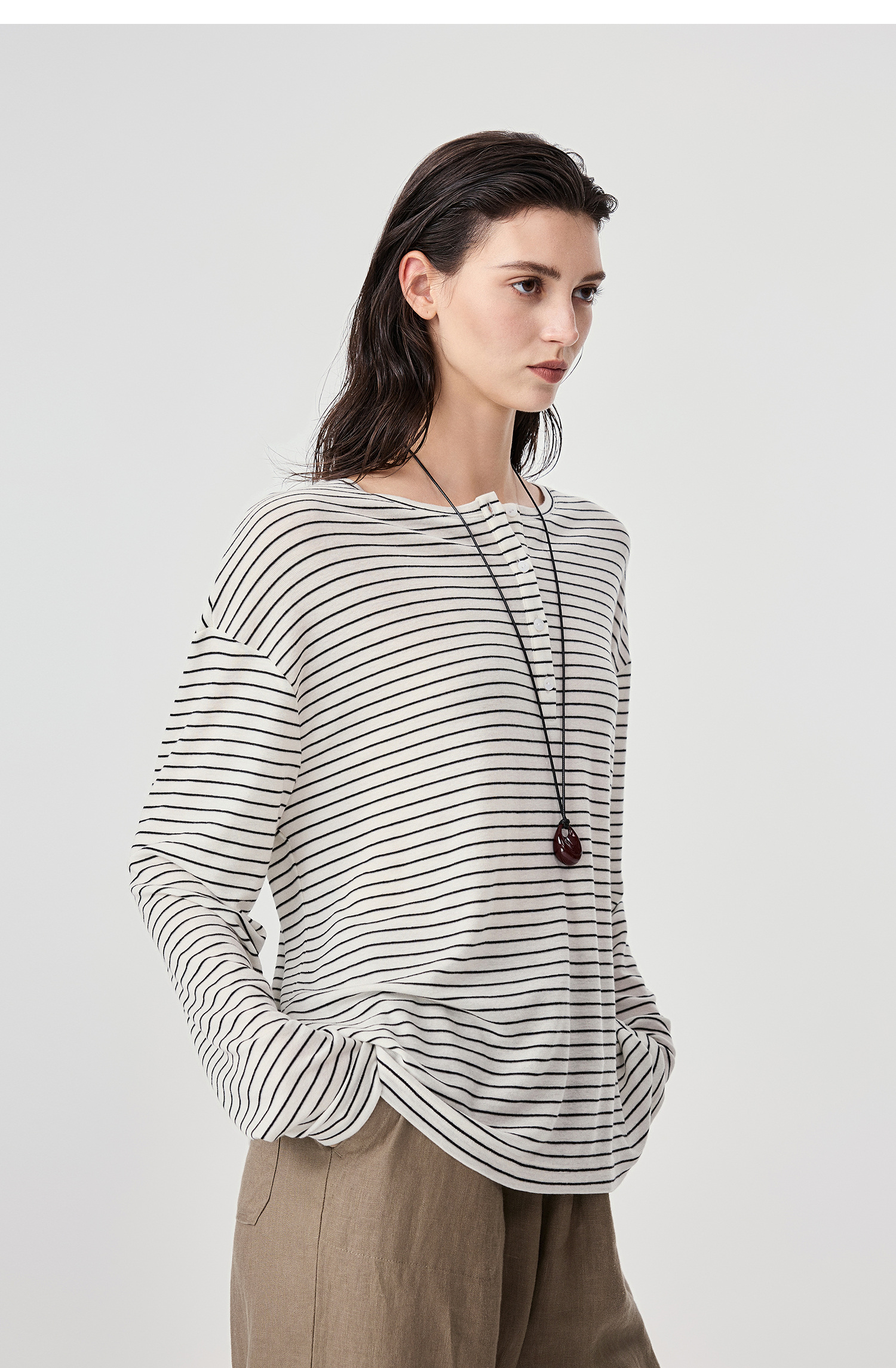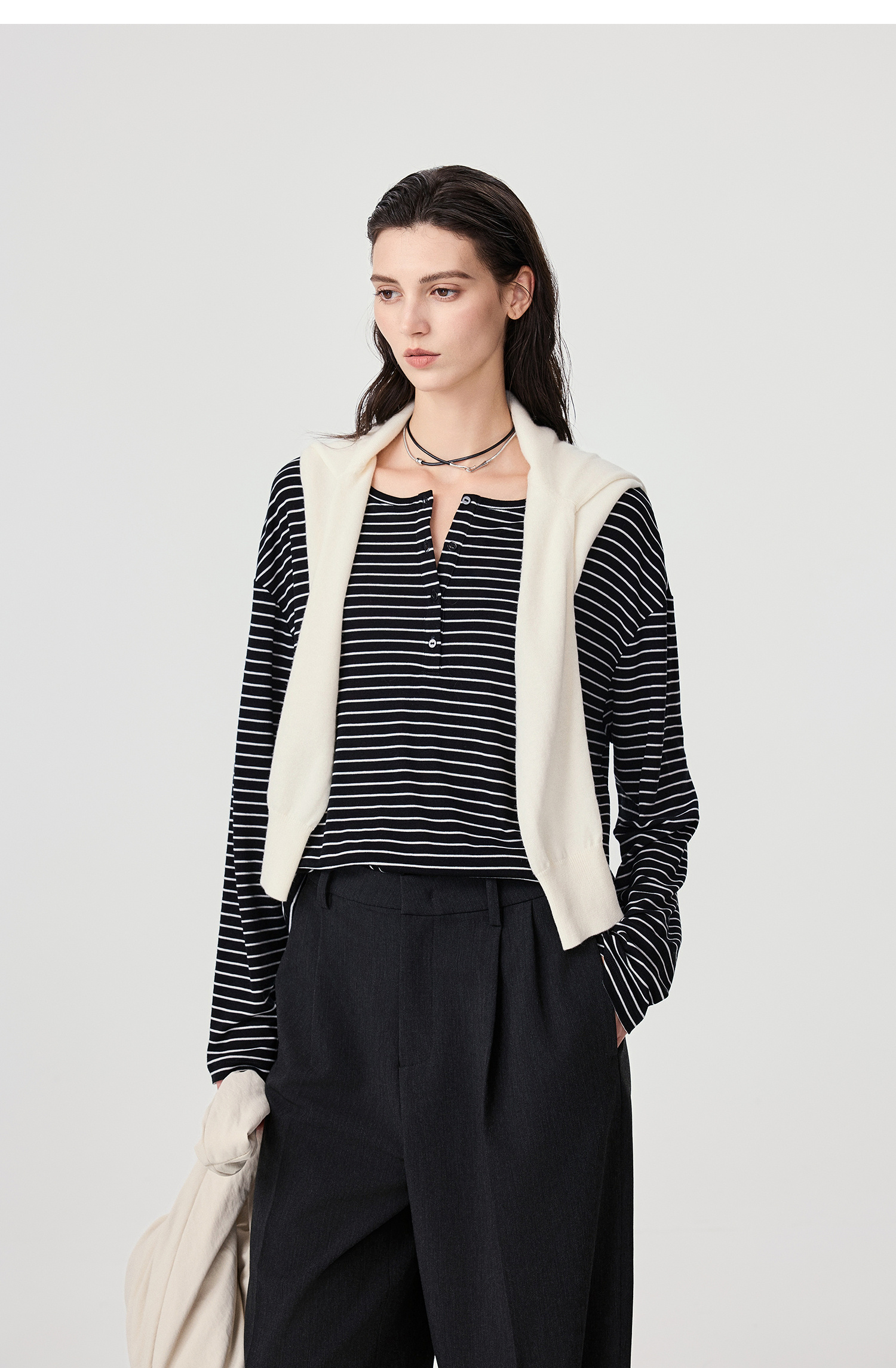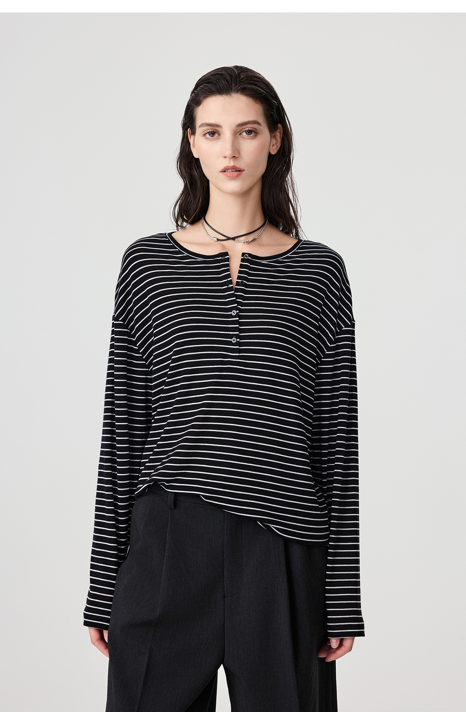 棉仓366601032-25天丝羊毛亨利领长袖T恤