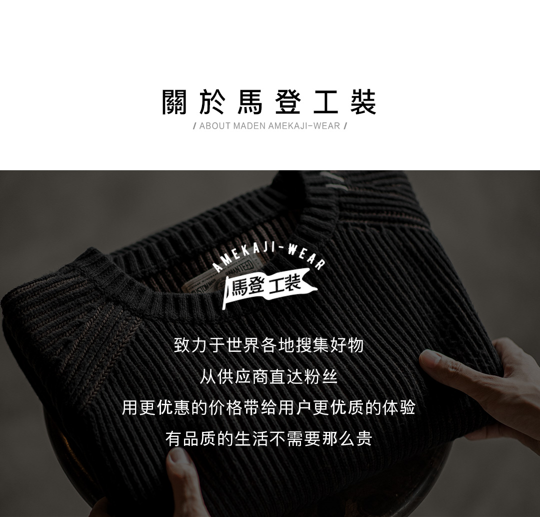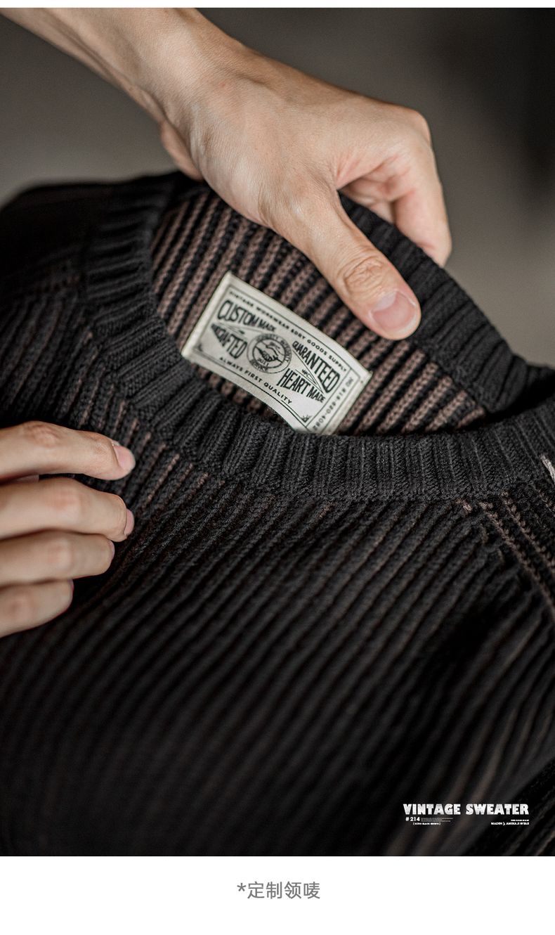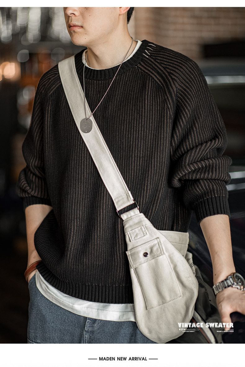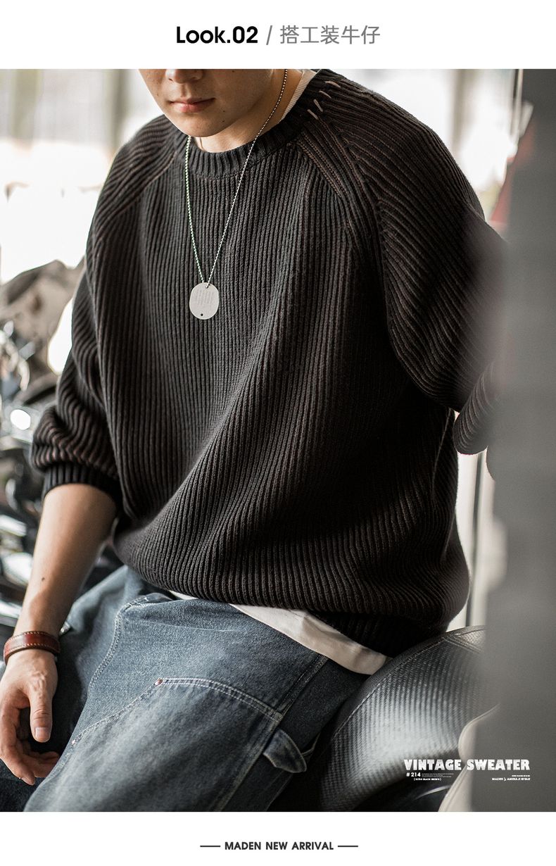 工装优选美式复古竖条纹编织毛衣插肩袖圆领加厚打底针织衫男秋冬
