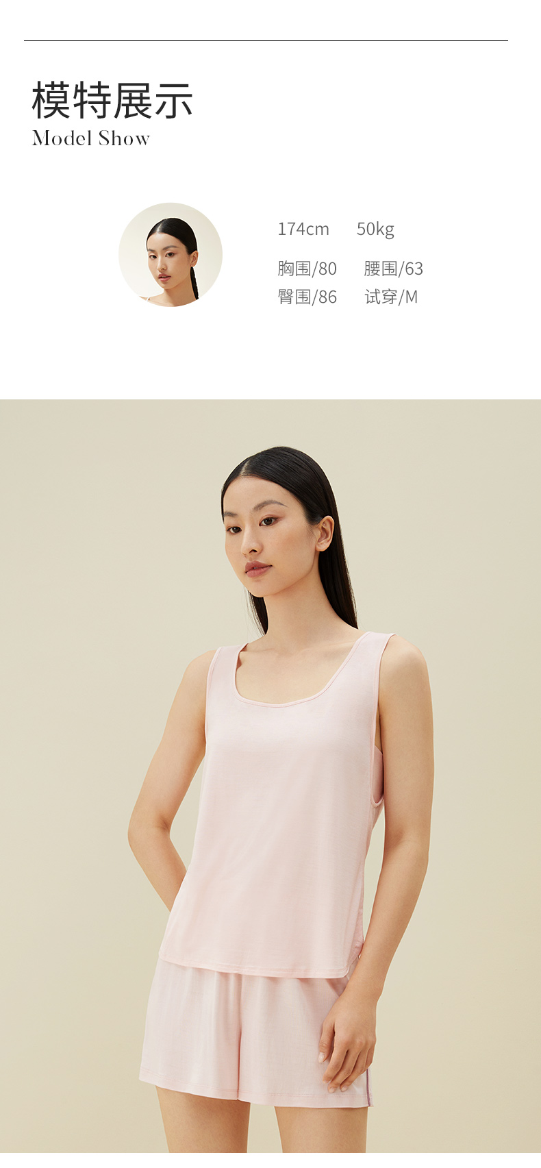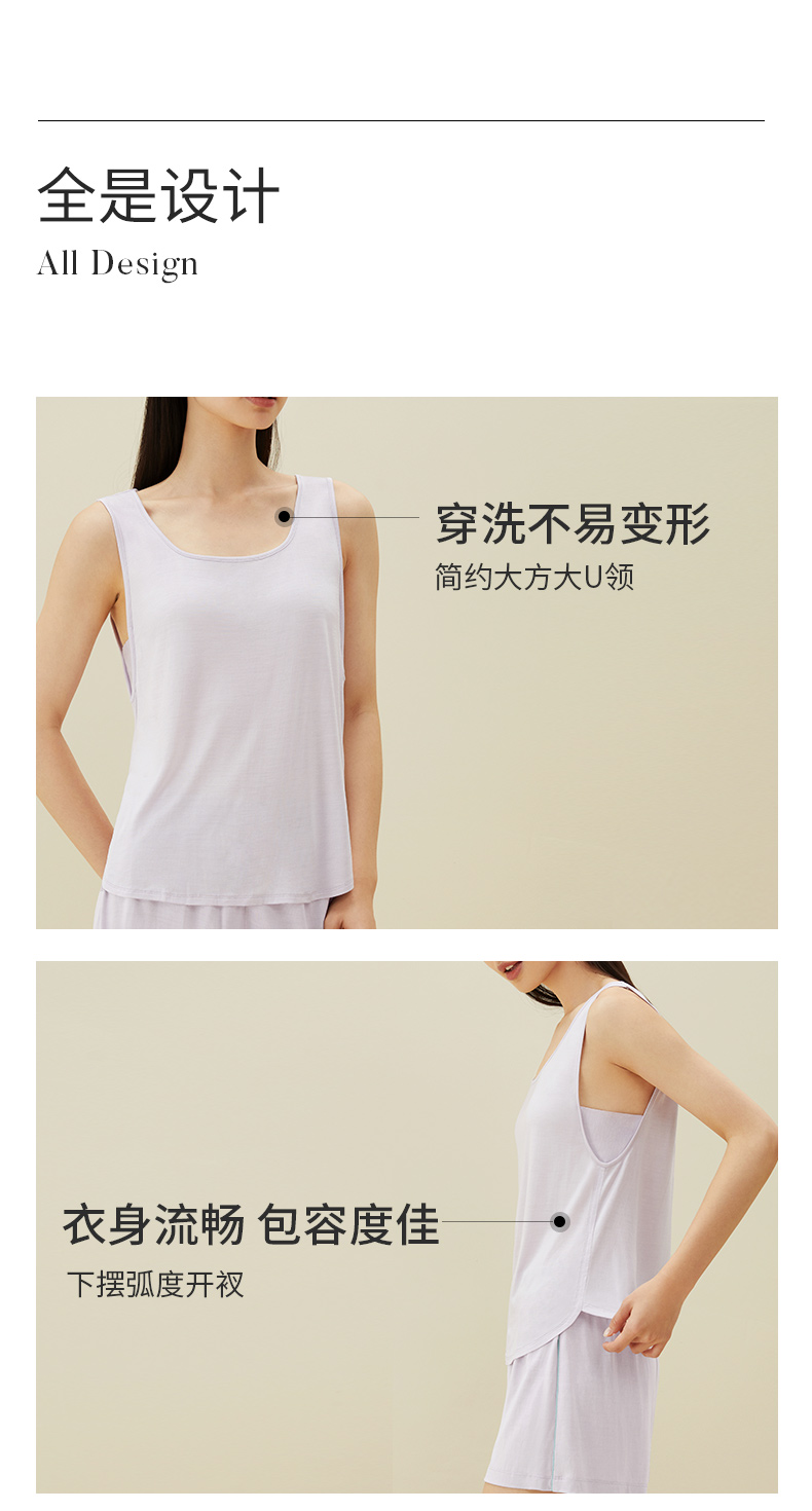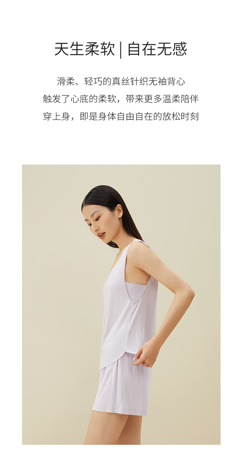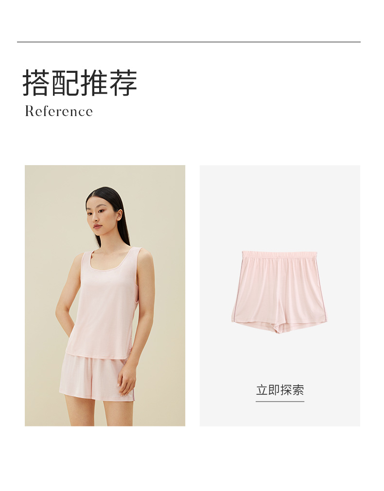 金三塔真丝大U领背心春夏软糯裸感舒适针织上衣女士宽松家居短裤 YZFDA702