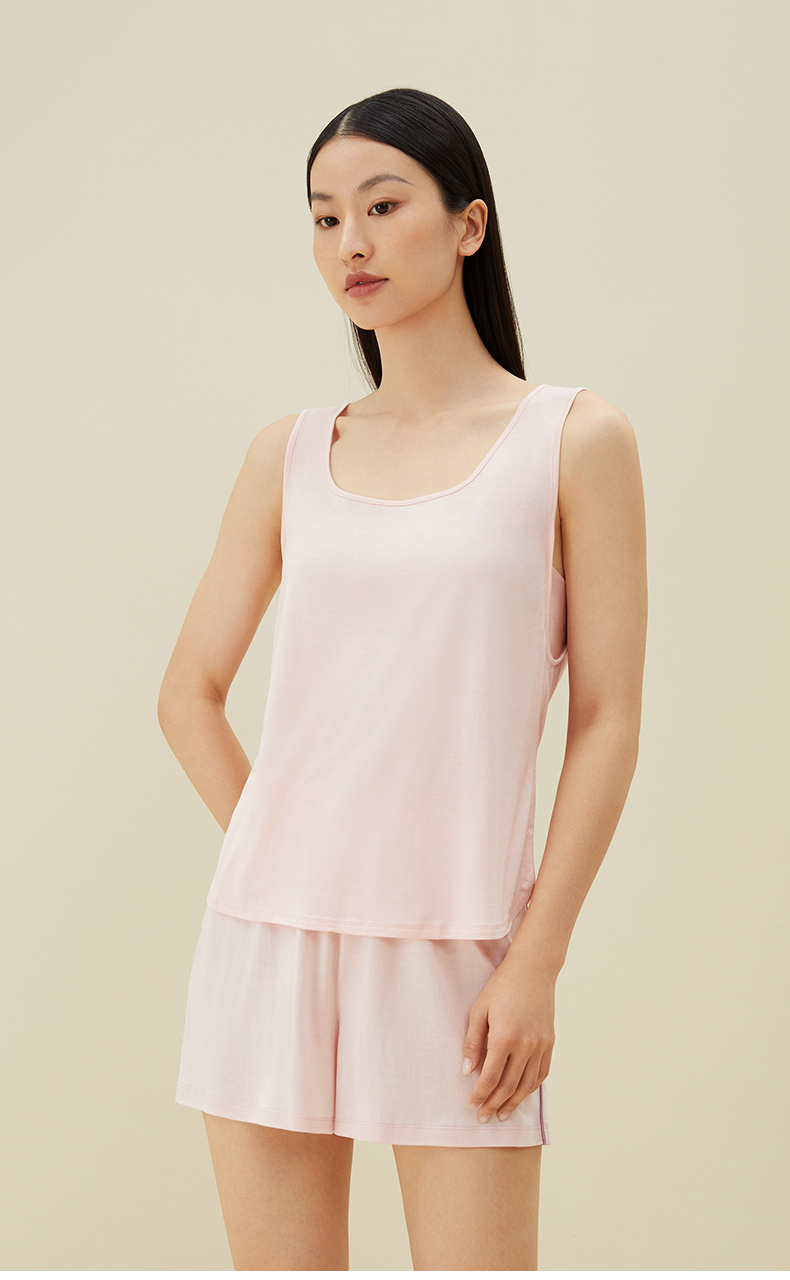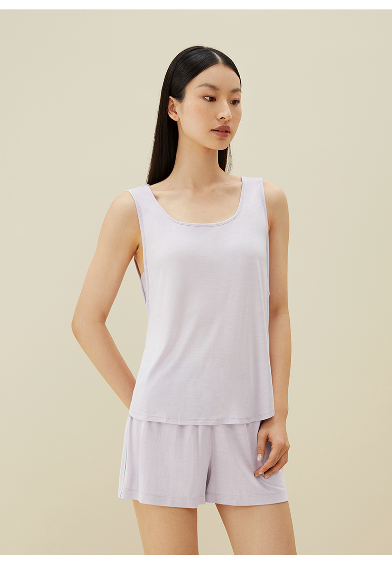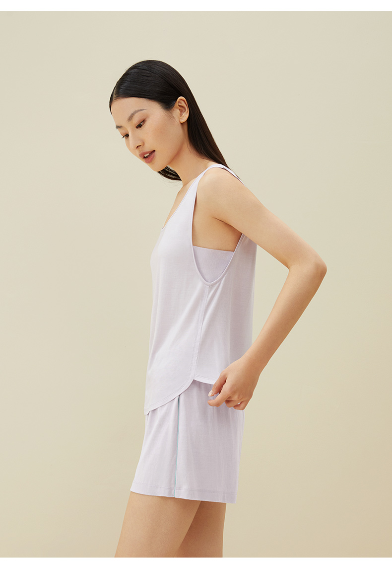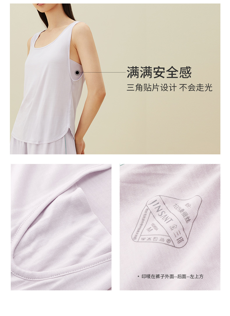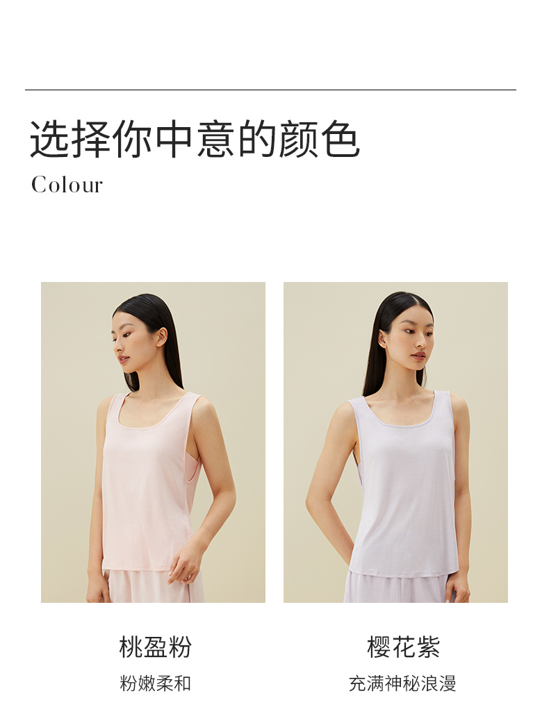 金三塔真丝大U领背心春夏软糯裸感舒适针织上衣女士宽松家居短裤 YZFDA702